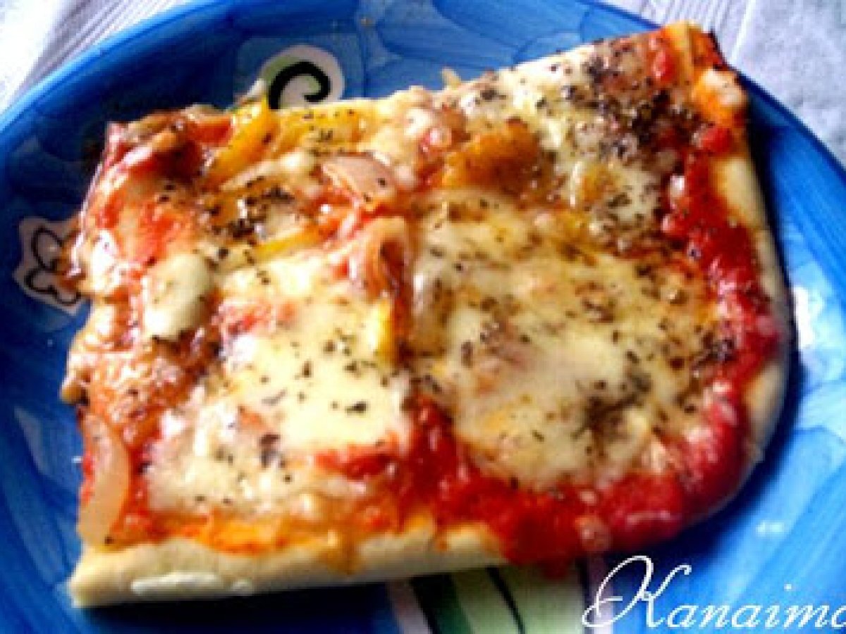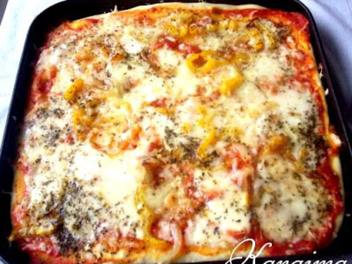 Pizza con pimentón y cebolla caramelizada AnteriorSiguiente OtroFácil35 min Enviar esta receta a un amigo Imprimir esta página Preguntar al autor Publicar la foto de esta receta Poner un toque dulzón que le va super! Ingredientes 2 Quesos: Mozarella y gouda rallado. OréganoBasilicum ( albahaca) Salsa de tomate natural ( la hice de tomates pelados naturales) Cebolla en rodajas finas pimentón o pimientos en rodajas finas pimentón amarillo