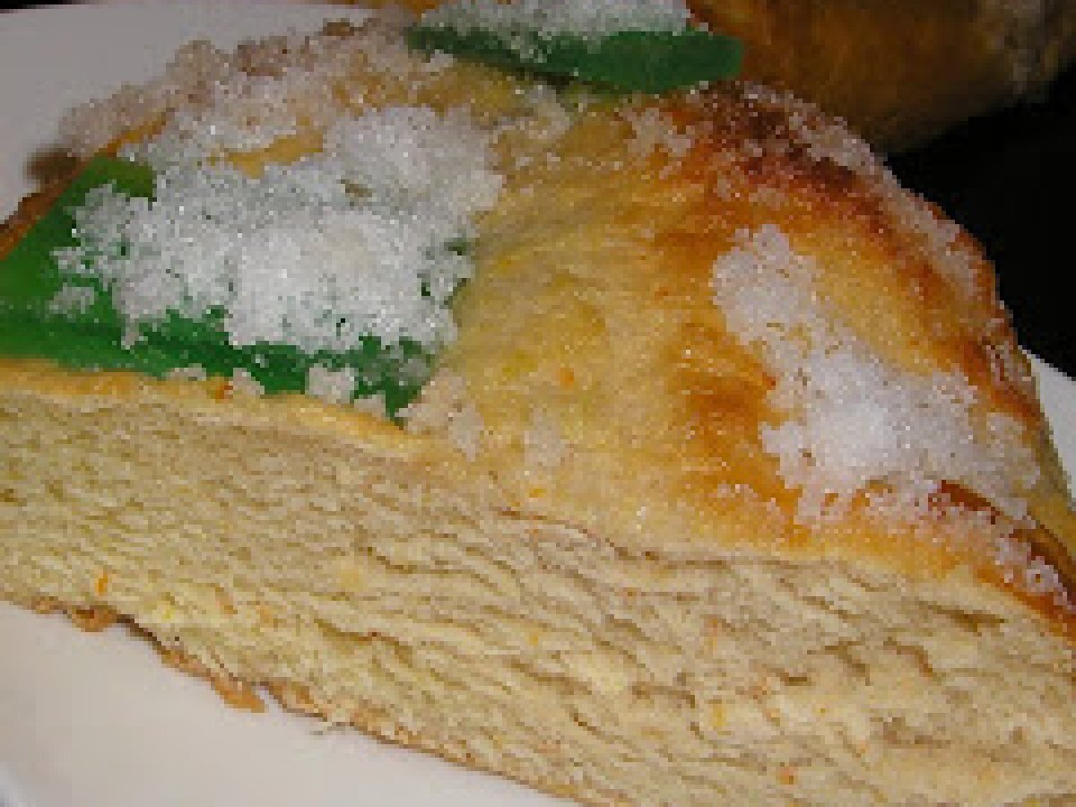 - Una vez relajada, metemos las manos en el centro y formamos el roscón del tamaño de la bandeja del horno, lo pintamos con huevo batido y lo adornamos con frutas confitadas y azúcar remojado en unas gotas de agua, dejamos reposar hasta que doble su volumen.