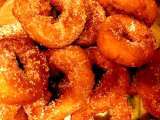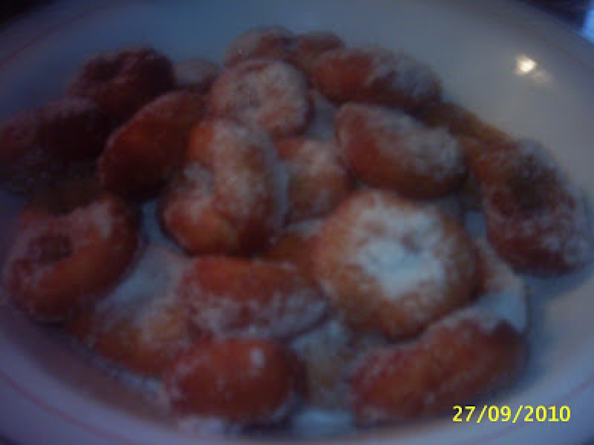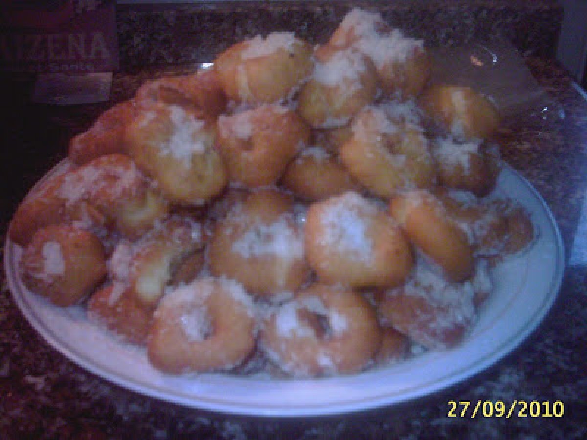 Rosquillas de melilla vota ahora AnteriorSiguiente OtroFácil1 hora165 Kcal Enviar esta receta a un amigo Imprimir esta página Preguntar al autor Publicar la foto de esta receta Ingredientes 12 1/2 vaso de aceite de girasol una copita de anis dulce 6 cucharadas soperas de azúcar una cucharada pomada de mantequilla 5 huevos harina la que admita 1 sobre y medio de royal Costo estimado: 2.77Euros€ (0.23€/porción)