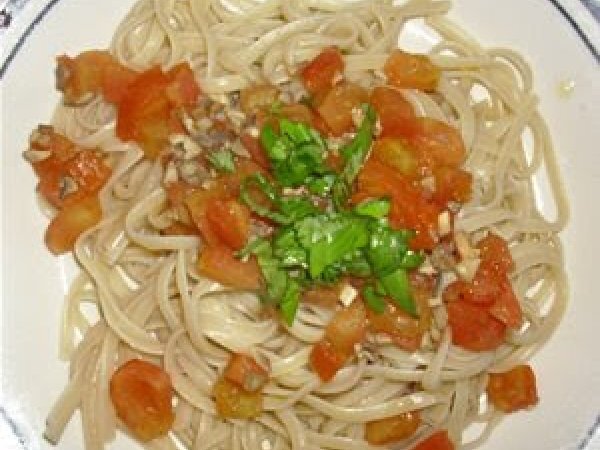 Tallarines mediterráneos AnteriorSiguiente OtroFácil11 min Enviar esta receta a un amigo Imprimir esta página Preguntar al autor Publicar la foto de esta receta Una forma fresca y liviana de comer pasta. Ingredientes 4 Tallarines (secos) : 250 g Tomates : 2 unidades Champignones : 30 g (5 o 6 champignones) Albahaca :20 g (un puñado de hojas) Ajo :1 diente Aceite de oliva : 30 cm3 Sal Pimienta negra molida