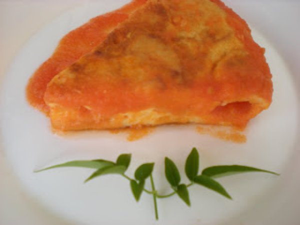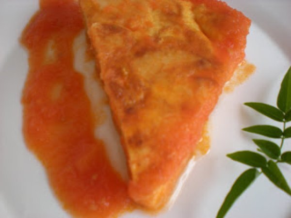 Tortilla de patata en tomate frito vota ahora AnteriorSiguiente OtroFácil45 min229 Kcal Enviar esta receta a un amigo Imprimir esta página Preguntar al autor Publicar la foto de esta receta Ingredientes 2 ½ tortilla de patatas 3 tomates grandes y pelados 3 cucharas de aceite oliva 1 toque de sal Costo estimado: 0.77Euros€ (0.39€/porción)