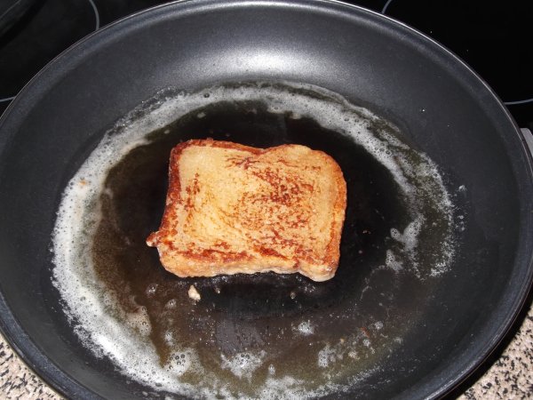 - Esta receta es mejor cocinarla en una plancha, aunque como yo no tenía ninguna a mano decidí utilizar una sartén, eso sí usar una antiadherente para que no se os peguen las tostadas.