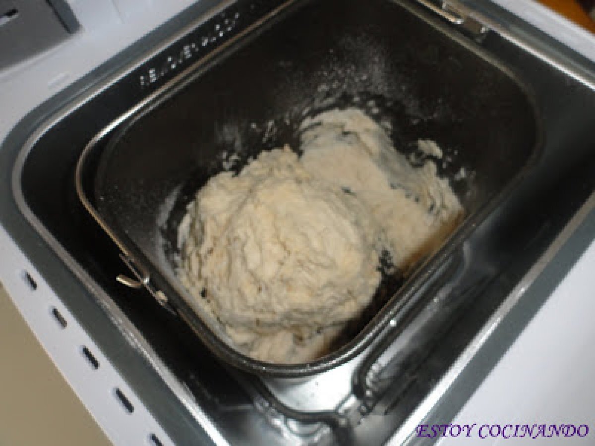 - Colocamos todos los ingredientes en la panificadora y le damos al programa de amasado durante cinco minutos.