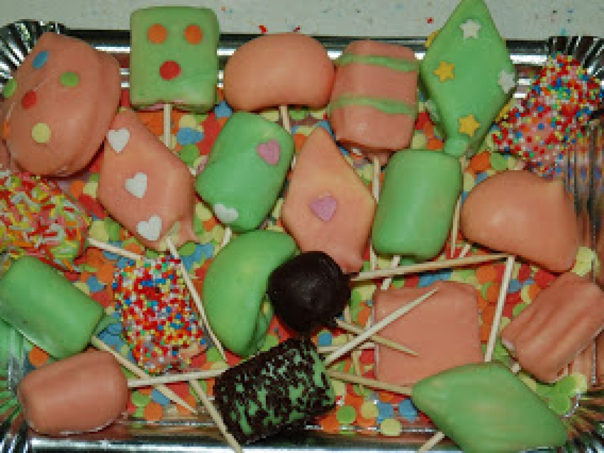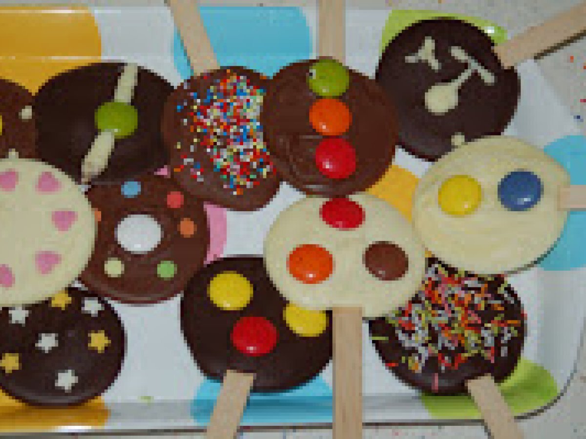 Truco o trato nubes y piruletas de chocolate AnteriorSiguiente OtroFácil1 h 10 m Enviar esta receta a un amigo Imprimir esta página Preguntar al autor Publicar la foto de esta receta Ingredientes 2 Una bolsa de nubes de distintos tamaños y formas 2 tabletas de chocolate blanco 50 g de manteca de cacao Colorante artificial para repostería Palillos de dientes Una naranja o limón Adornos de reposteria varios