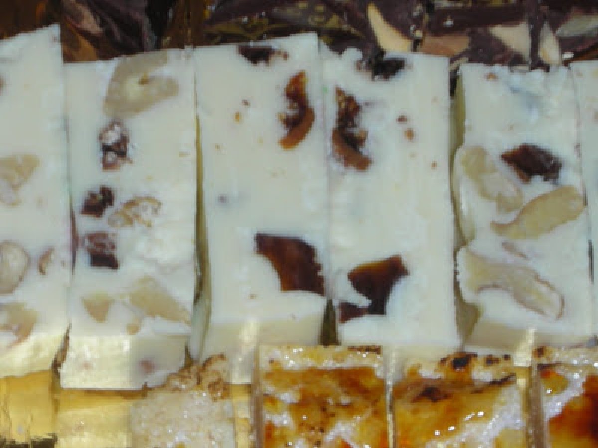 Turrón de chocolate blanco con higos secos y nueces OtroFácil45 min632 Kcal Enviar esta receta a un amigo Imprimir esta página Preguntar al autor Publicar la foto de esta receta Ingredientes 4 250 g de chocolate blanco 40 g de manteca de cerdo 10 higos secos a trocitos 50 g de nueces a trozos Costo estimado: 5.62Euros€ (1.41€/porción)