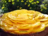 Pastís de formatge amb préssecs de calanda. pastel de queso con melocotones de calanda.