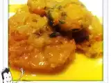 Ingredientes: 5 patatas medianas 1 huevo para rebozar 250 g de almejas ½ cebolla Colorante una pizca 1 pastilla de caldo de pescado Aceite hasta la mitad del...