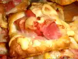Aperitivos salados Aperitivo Fácil 15 min 20 minIngredientes: 1 placa de masa de hojaldre rectangular 250 g de dados de jamon cocido 150 g de gruyer rallado mostaza de Dijon