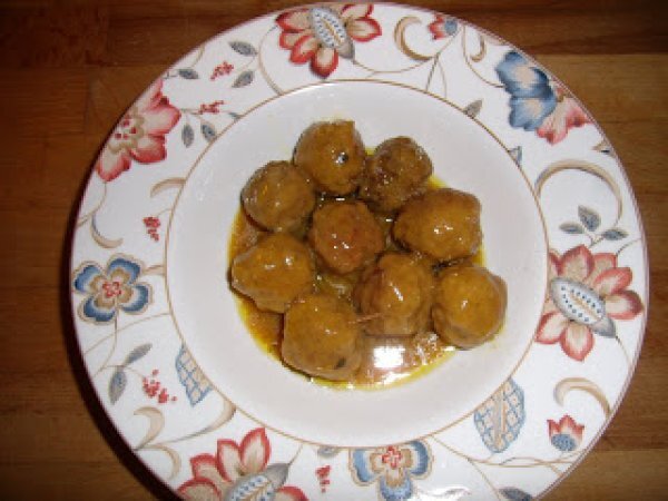 Albóndigas en salsa de curry y naranja PlatoMedio50 min737 Kcal Enviar esta receta a un amigo Imprimir esta página Preguntar al autor Publicar la foto de esta receta Ingredientes 4 1kg de carne picada de ternera y cerdo , 1 huevo, 1/2 vaso de leche , sal , ajo molido, peregil molido , nuez moscada molida , jenjibre molido, pimienta molida, 1 rebanada de pan de molde sin corteza , un chorreón de aceite de girasol , pan rayado. PARA LA SALSA: 2 naranjas , 1 cebolla pequeña, sal , curry molido , pimienta molida, 1/2 vaso de agua, aceite de oliva. Costo estimado: 13.43Euros€ (3.36€/porción)