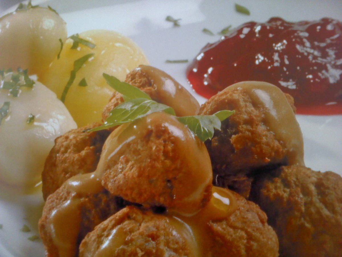Albóndigas en salsa de nata PlatoMedio50 min Enviar esta receta a un amigo Imprimir esta página Preguntar al autor Publicar la foto de esta receta Ingredientes 4 500 gr de carne picada cerdo y ternera, un diente de ajo, una cucharada de pimentón, un huevo,aceite de oliva,pan rayado, 200 mil nata liquida harina, cebolla 1 cucharada de mantequilla una taza de caldo de carne 100 gr de tomate frito y sal la que admita