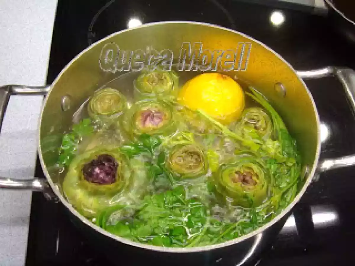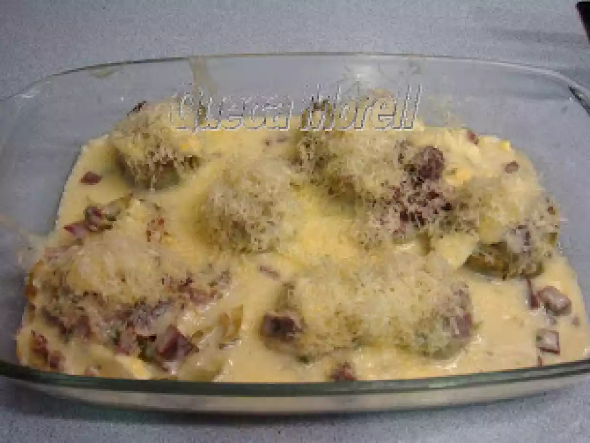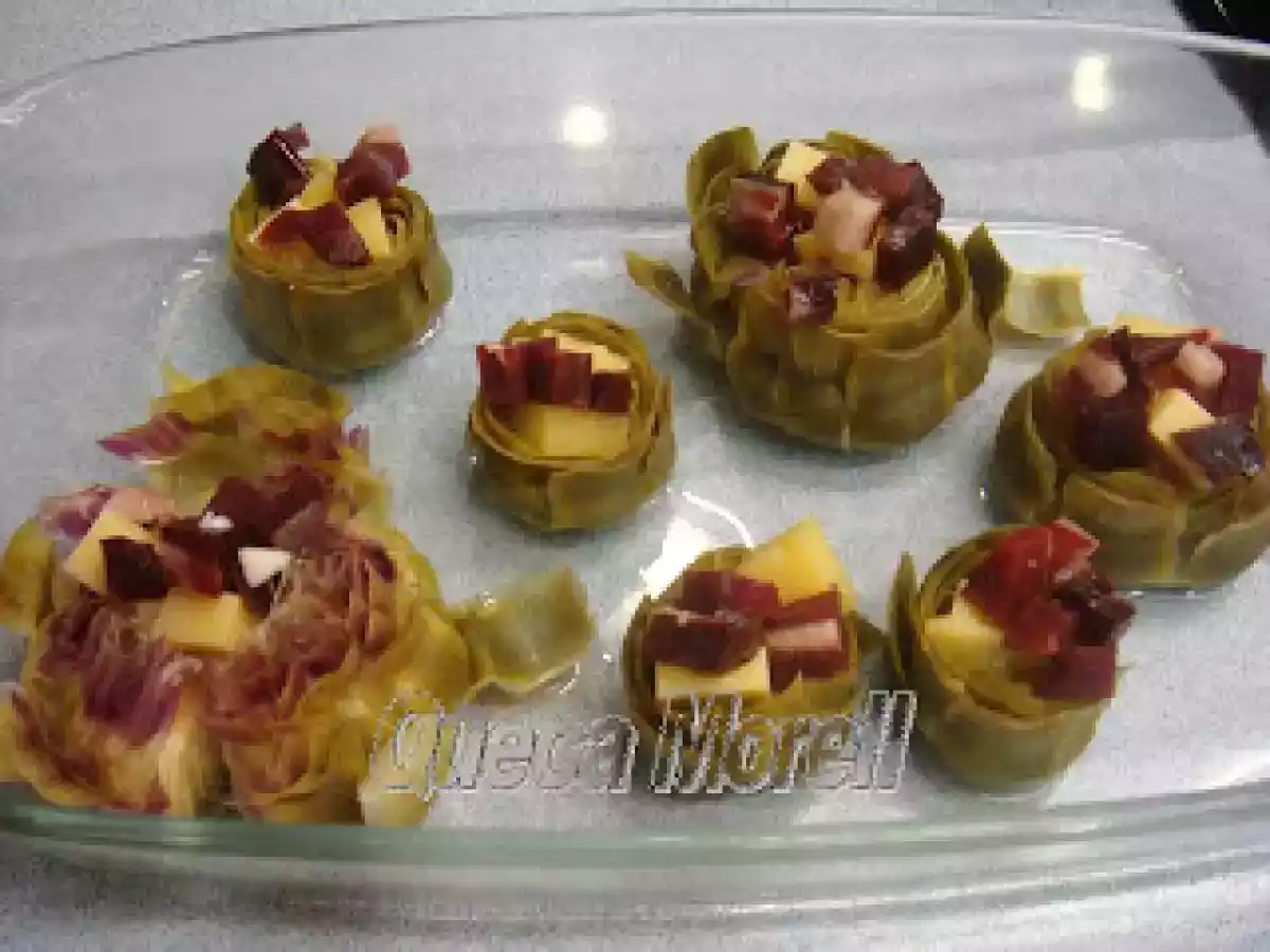 Alcachofas rellenas gratinadas. vota ahora AnteriorSiguiente PlatoFácil40 min Enviar esta receta a un amigo Imprimir esta página Preguntar al autor Publicar la foto de esta receta Disfruta de esta deliciosa receta. Ingredientes 4 para cocer las alcachofas: alcachofas agua 1 vaso de vino blanco 1/2 limón un manojito de perejil sal para la bechamel: 1 cucharada de mantequilla 1 cucharada de harina leche caldo de cocer las alcachofas perejil picado sal y pimienta nuez moscada para el relleno: taquitos de jamón serrano queso gruyere en tacos huevo cocido picado más queso gruyere, pero este rallado para gratinar