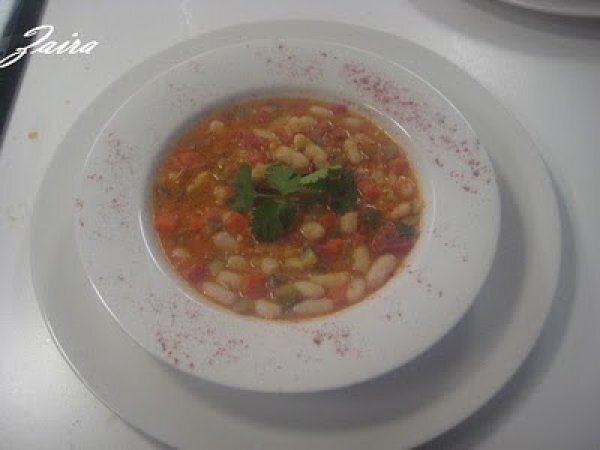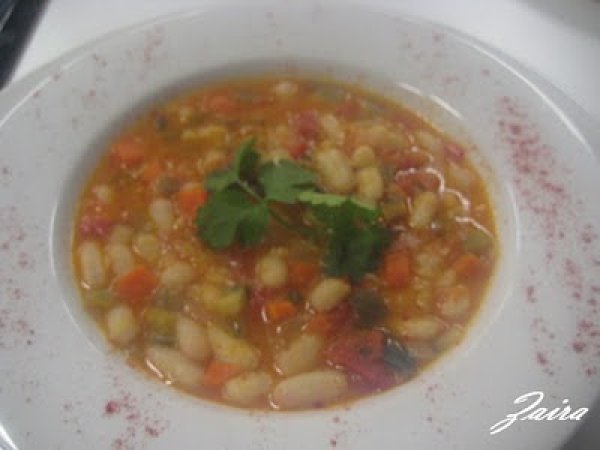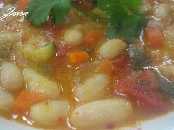 Alubias o judías blancas con verduritas vota ahora AnteriorSiguiente PlatoFácil30 min Enviar esta receta a un amigo Imprimir esta página Preguntar al autor Publicar la foto de esta receta Ingredientes 2 500 g de alubias o judías blancas 3 tomates pelados 1 pimiento verde troceado 1 pimiento rojo troceado 2 zanahorias 1 calabacín 3 dientes de ajo 1 cebolla Agua o fondo Aceite de oliva un poco de pimentón dulce si se desea 1 hoja de laurel 1 cucharadita de harina sal