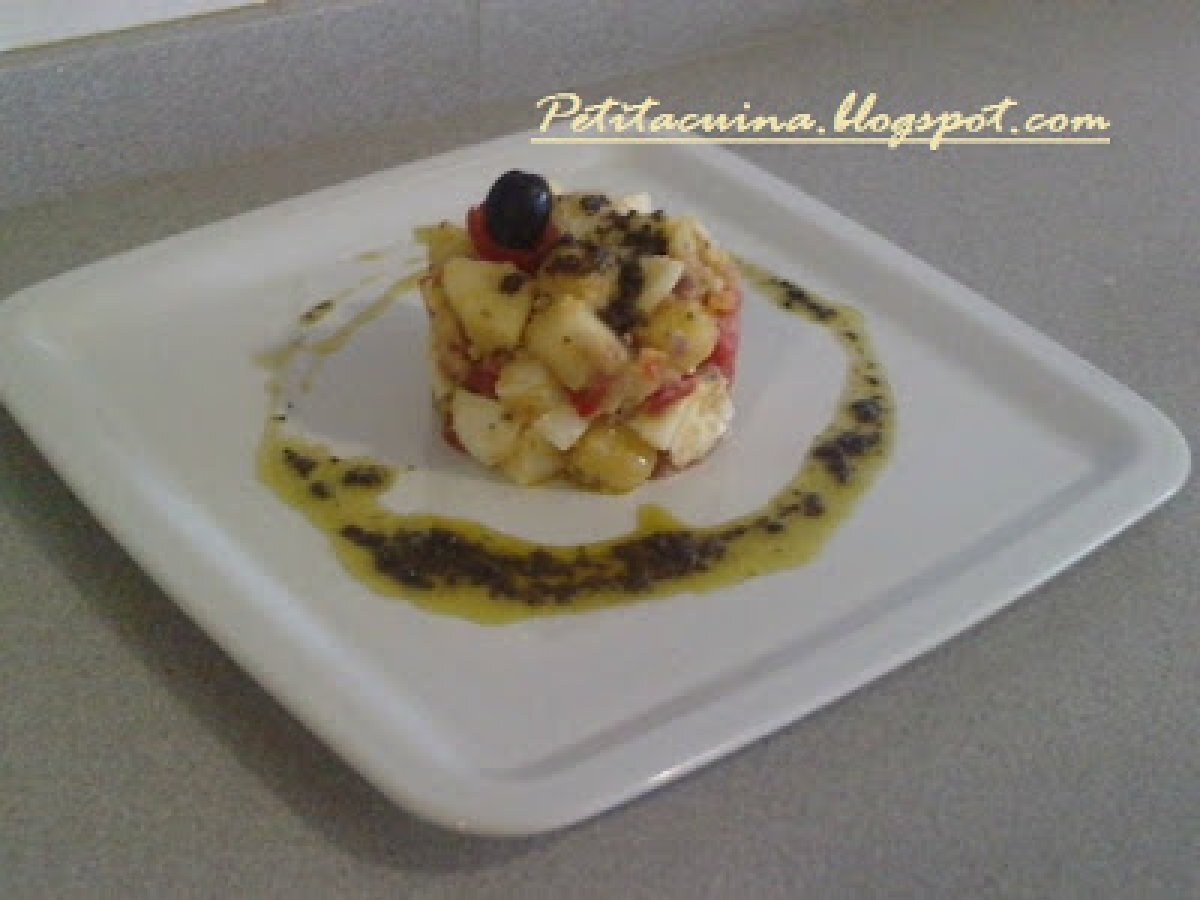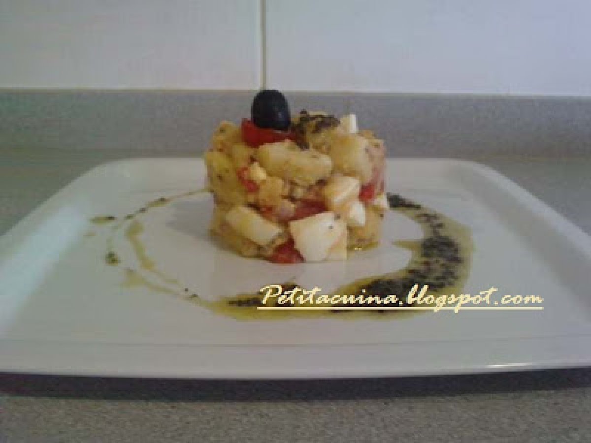 Amanida de patata i síndria amb vinagreta d'olives negres. vota ahora AnteriorSiguiente PlatoMedio50 min Enviar esta receta a un amigo Imprimir esta página Preguntar al autor Publicar la foto de esta receta Ingredientes 2 Patates.Síndria. Ceba. Pebrot vermell. Ou dur. Tomàquets en cancassè. Per la vinagreta:Olives negres. Oli d'oliva.Vinagre.Orenga.Sal/pebre al gust.