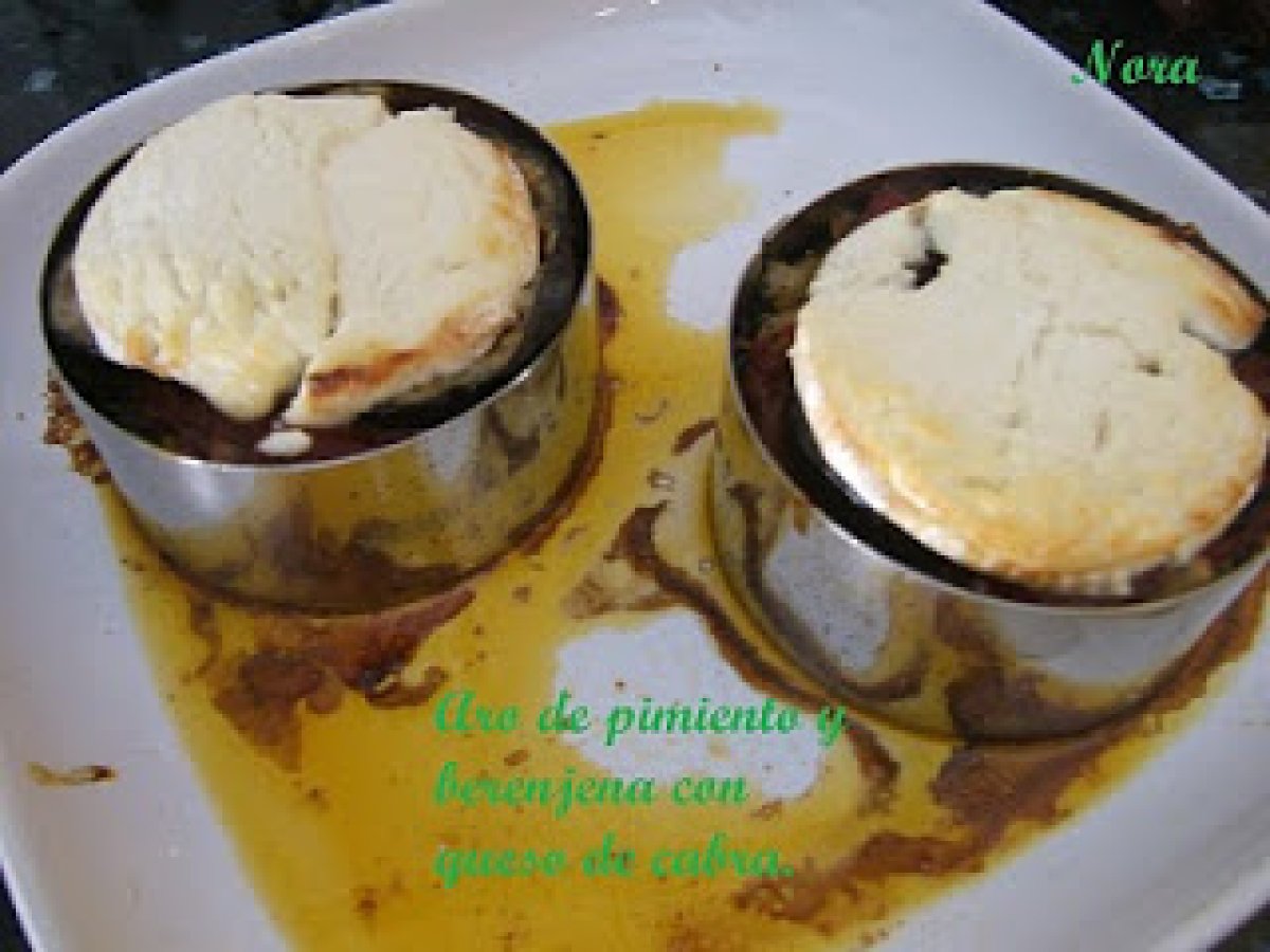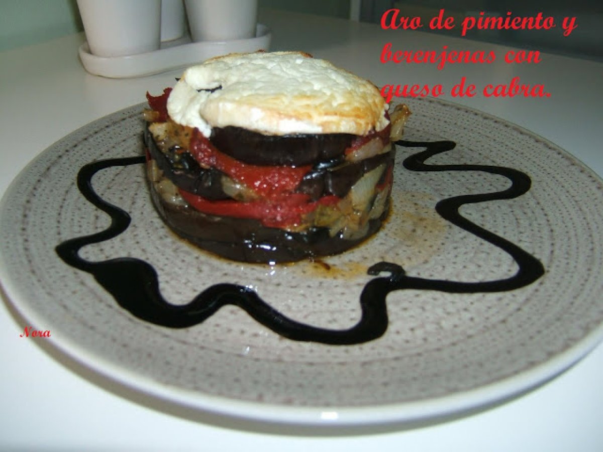 Aro de pimiento y berenjenas con queso de cabra.