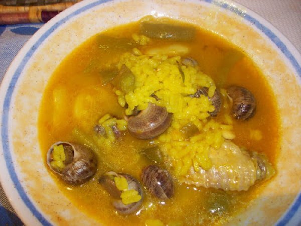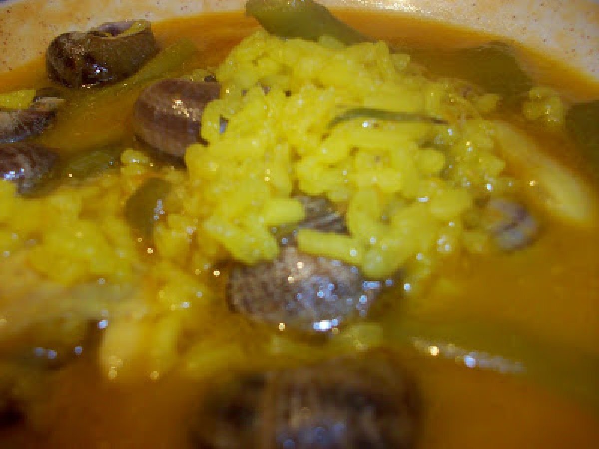 Arroz caldoso de pollo y caracoles AnteriorSiguiente PlatoMedio55 min Enviar esta receta a un amigo Imprimir esta página Preguntar al autor Publicar la foto de esta receta Ingredientes 4 350 gr de pollo /en este caso 3 alitas con sus muslitos y un espinazo 60 gr de aceite de OVE 150 gr de judias verdes planas 100 gr de tomate triturado, natural 1000-1200 gr de agua, según queráis, mas caldosito sal a gusto 60 gr de garrofón azafrán 100 gr de caracoles 175 a 200 gr de arroz 1 cucharadita de pimentón 1 ramita de romero fresco sal
