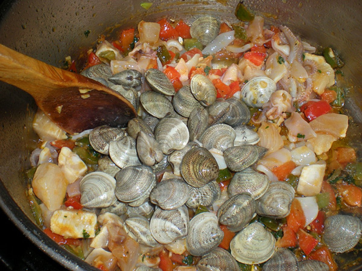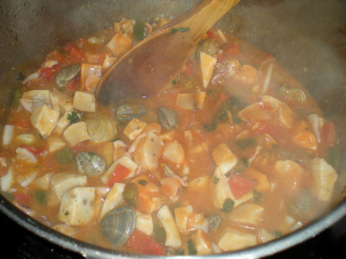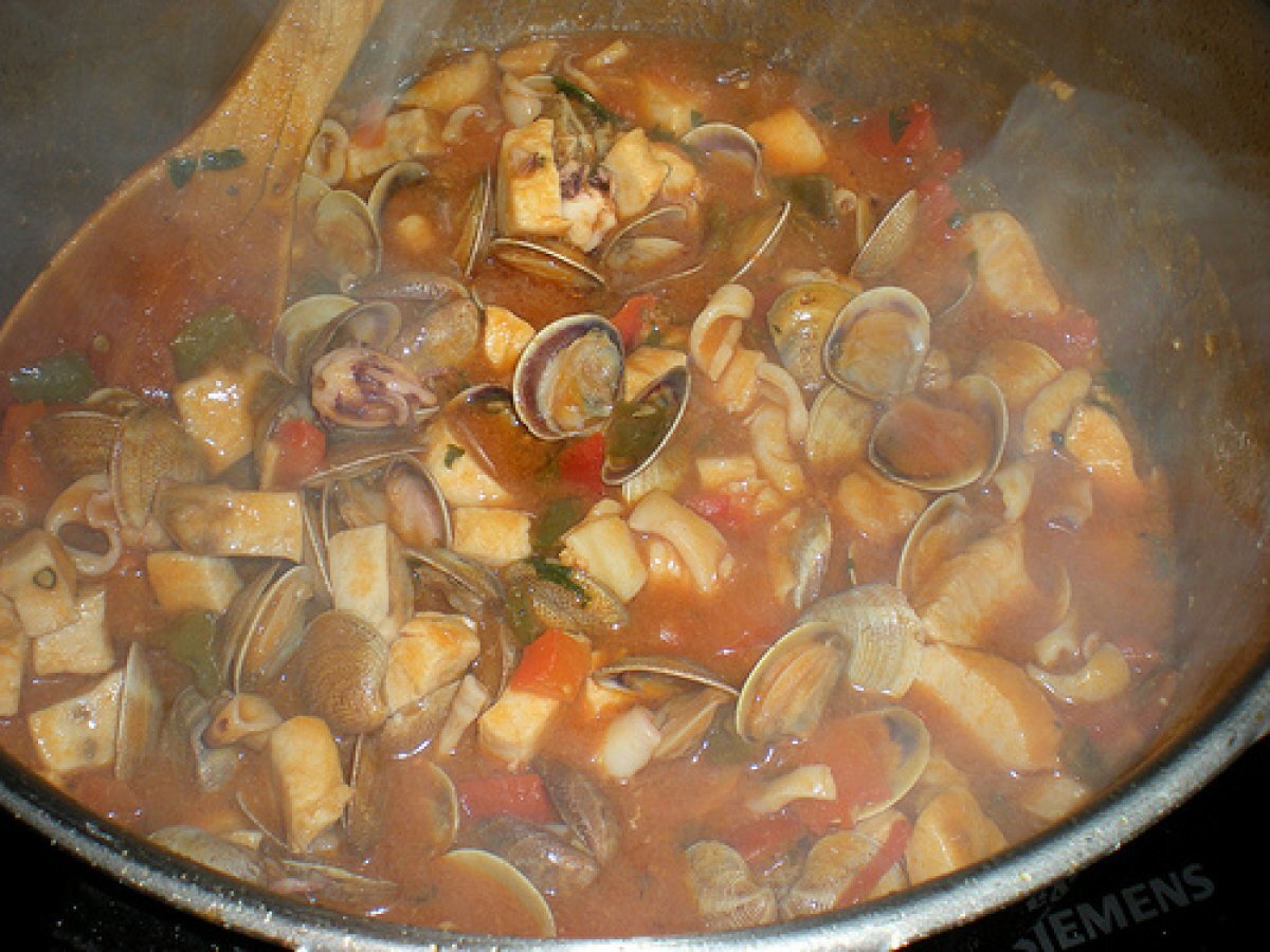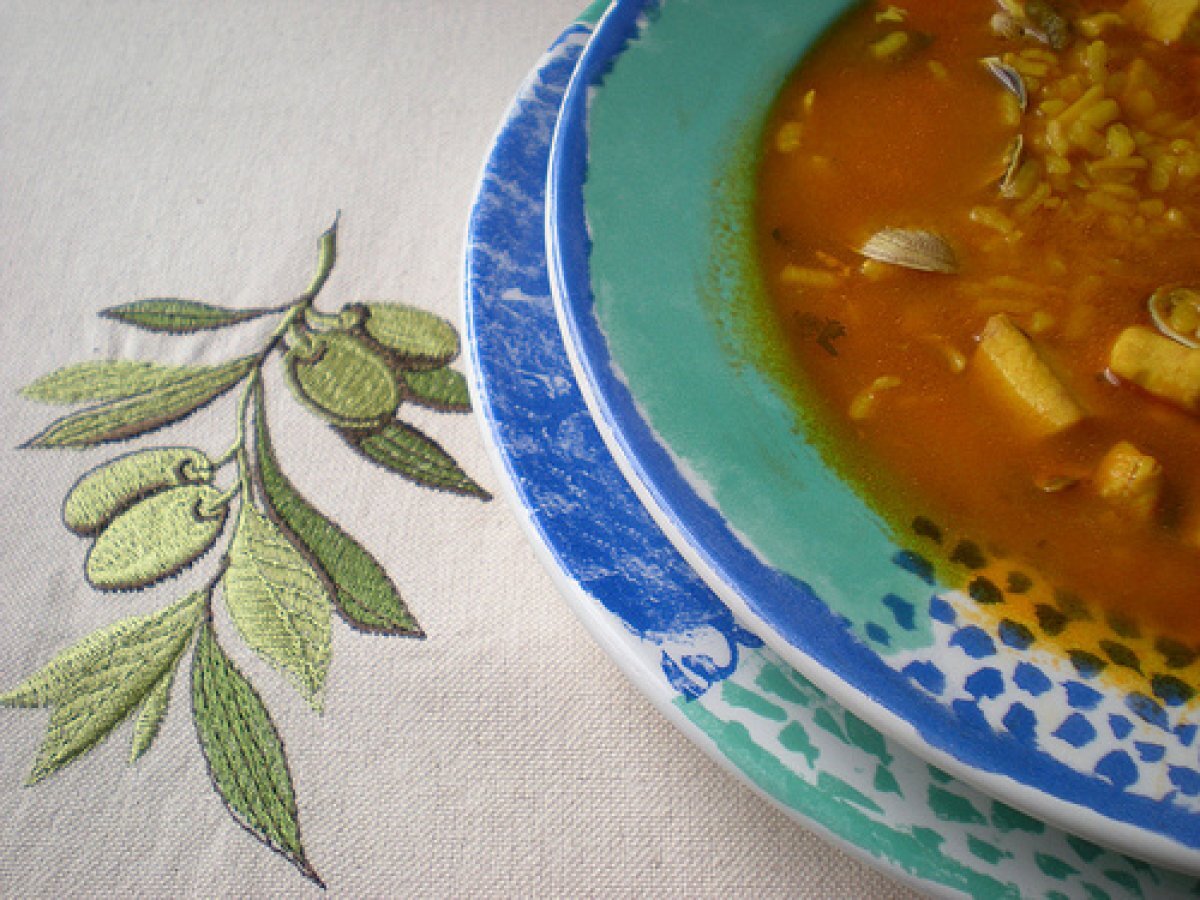 Arroz caldoso en olla rápida. paso a paso AnteriorSiguiente PlatoFácil30 min585 Kcal Enviar esta receta a un amigo Imprimir esta página Preguntar al autor Publicar la foto de esta receta Ingredientes 2 1 pimiento verde 1 pimiento rojo 1 tomate Aceite de oliva virgen extra Calamar (yo usé 4 ya que eran muy pequeños) Pez espada (1 filete) 2 puñados de almejas 3 dientes de ajo Unos granos de pimienta negra Unas hebras de azafrán Sal Curcuma o colorante alimentario 2 cucharadas de tomate frito 1 chorreón de vino blanco 1 vaso de arroz 4 vasos de caldo de pescado