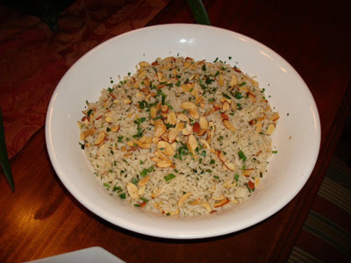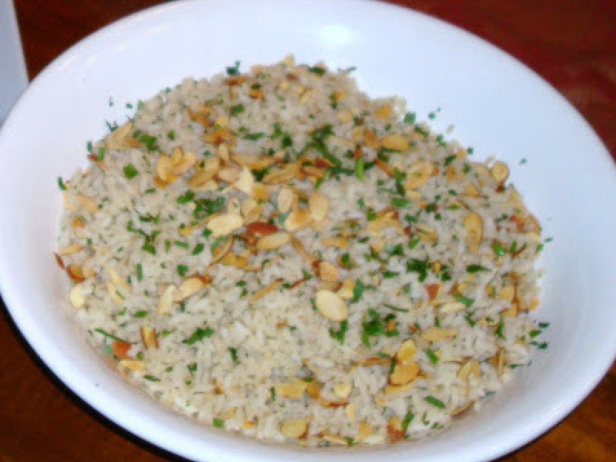 Arroz con almendras, cebollín chino y perejil AnteriorSiguiente PlatoFácil40 min1525 Kcal Enviar esta receta a un amigo Imprimir esta página Preguntar al autor Publicar la foto de esta receta Disfruta de esta nueva receta. Ingredientes 2 1/3 taza de almendras rebanadas 2 cucharadas de mantequilla 3 tazas de arroz cocido (cocido en caldo de carne) 3 cucharadas de perejil fresco picado 3 cucharadas de cebollino cortado con tijeras ¼ taza de vino blanco seco Costo estimado: 5.75Euros€ (2.87€/porción)