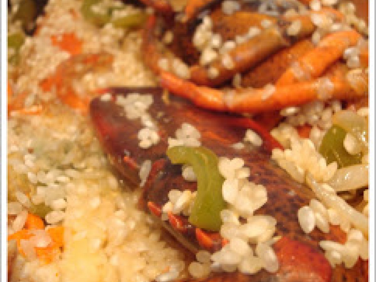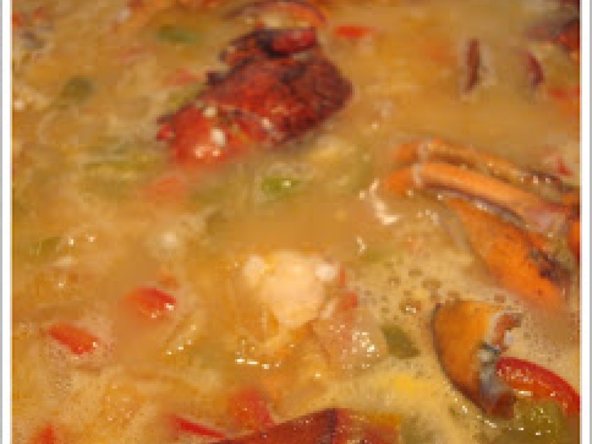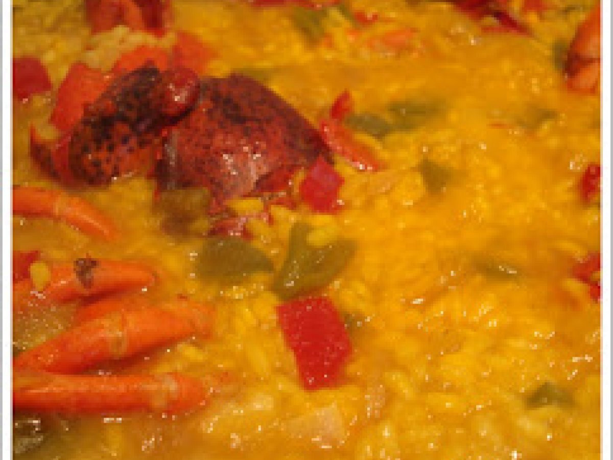 Arroz con bogabante o "lumbrigante con arroz" AnteriorSiguiente PlatoFácil1 hora Enviar esta receta a un amigo Imprimir esta página Preguntar al autor Publicar la foto de esta receta Ingredientes 4 2 bogabantes 500 g de arroz El doble se caldo de pescado que de arroz 1 cebolla 2 dientes de ajo 1 pimiento verde 1 pimiento rojo Un chorro de aceite de oliva Azafrán o colorante Sal