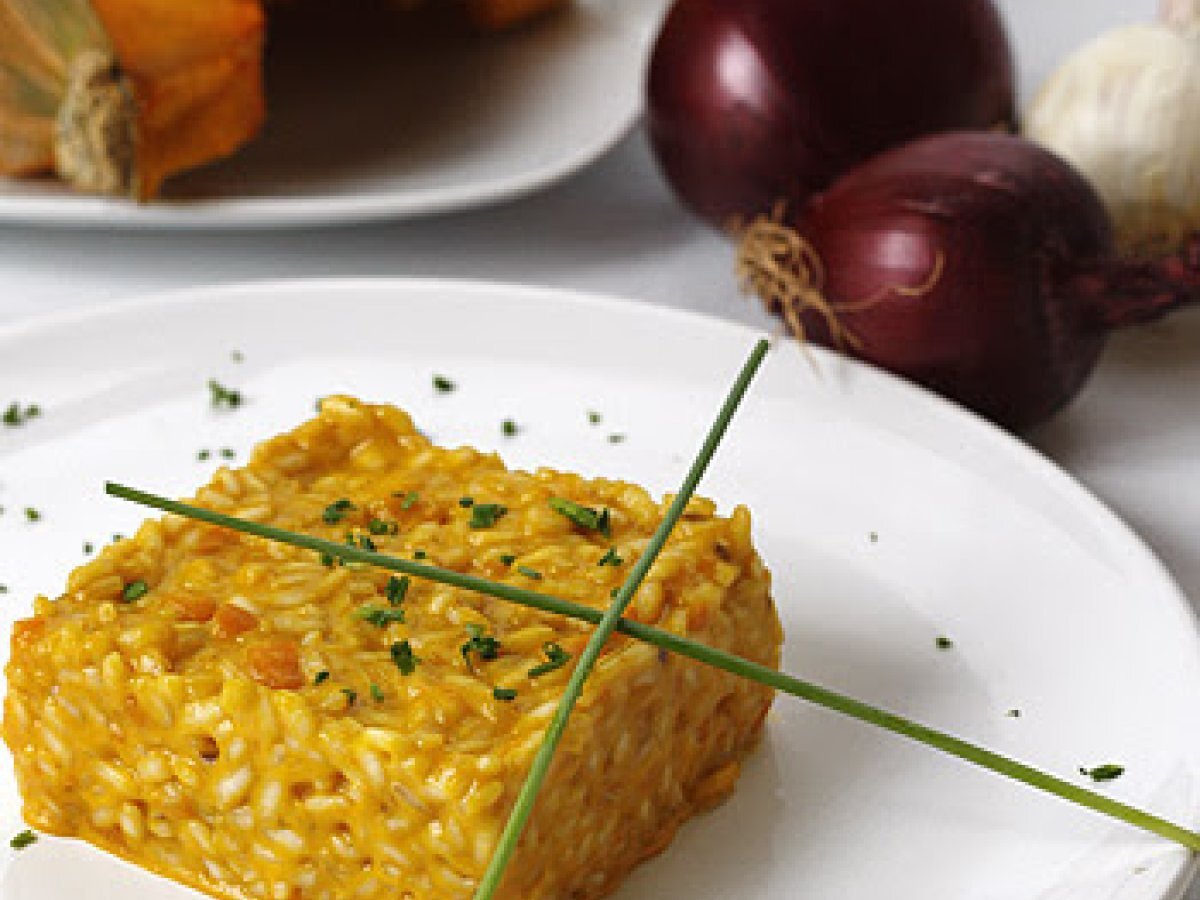 Arroz con calabaza y queso parmesano PlatoFácil45 min3222 Kcal Enviar esta receta a un amigo Imprimir esta página Preguntar al autor Publicar la foto de esta receta Ingredientes 1 400 g arroz arborio, 400 g pulpa de calabaza, 150 g mantequilla, 100 g parmigiano reggiano, 1 cebolla, 1 l caldo vegetal, 1 vaso de vino blanco, perejil, sal y pimienta. Costo estimado: 6.88Euros€ (6.88€/porción)