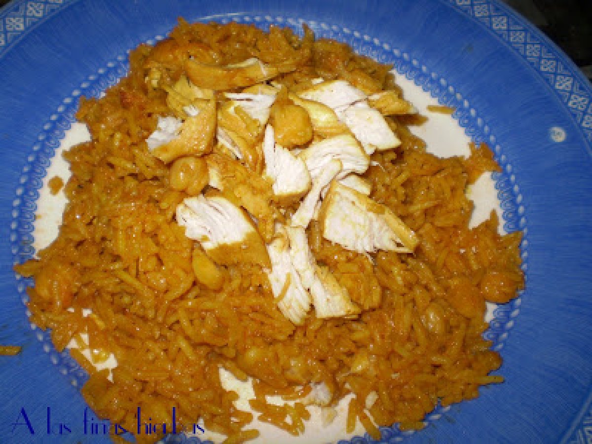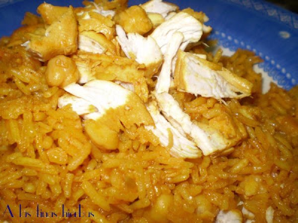 Arroz con garbanzos y pollo vota ahora AnteriorSiguiente PlatoFácil30 min1280 Kcal Enviar esta receta a un amigo Imprimir esta página Preguntar al autor Publicar la foto de esta receta Ingredientes 1 1 taza de arroz basmati 50 g de garbanzos cocidos 150 g de pechuga de pollo 1/2 cebolla, 3 cucharadas de tomate frito agua aceite de oliva pimentón colorante cúrcuma jengibre molido y sal. Costo estimado: 4.34Euros€ (4.34€/porción)