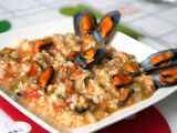 Arroz con mejillones y langostinos (fc) PlatoFácil40 min Enviar esta receta a un amigo Imprimir esta página Preguntar al autor Publicar la foto de esta receta Ingredientes 2 200 g de arroz 12 langostinos unos cuantos mejillones congelados pimiento verde y rojo congelado cebolla congelada un puñado de guisantes aceite de oliva, agua y sal 1 pastilla de caldo de pescado 1/2 sobre de especias para paella un chorro de vino blanco un poco de colorante alimentario 100 ml. de salsa de tomate