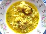 Arroz con pollo, pasas y nueces al "ras el hanout" PlatoMedio50 min422 Kcal Enviar esta receta a un amigo Imprimir esta página Preguntar al autor Publicar la foto de esta receta Ingredientes 2 * 1 vaso de arroz * 2 vasos de caldo de pollo * 1/4 de cebolla * 1 pechuga de pollo * Un puñado de pasas moscatel * Un puñado de nueces * Un chorro de vino blanco * 1 cucharada de Ras el Hanout * Ajo y perejil * Aceite y sal Costo estimado: 3.31Euros€ (1.66€/porción)