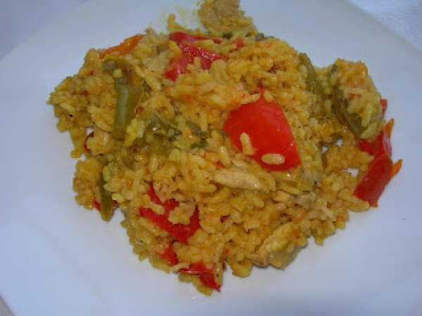 Arroz con pollo y verduras al curry. paso a paso. PlatoFácil50 min807 Kcal Enviar esta receta a un amigo Imprimir esta página Preguntar al autor Publicar la foto de esta receta Ingredientes 2 2 vasos de arroz 1 pimiento rojo 2 pimientos verdes 1 trozo de calabaza Pechuga de pollo 5 vasos de agua o caldo suave de pollo o verduras Jengibre Cúrcuma Curry Sal Aceite de oliva Costo estimado: 6.61Euros€ (3.3€/porción)