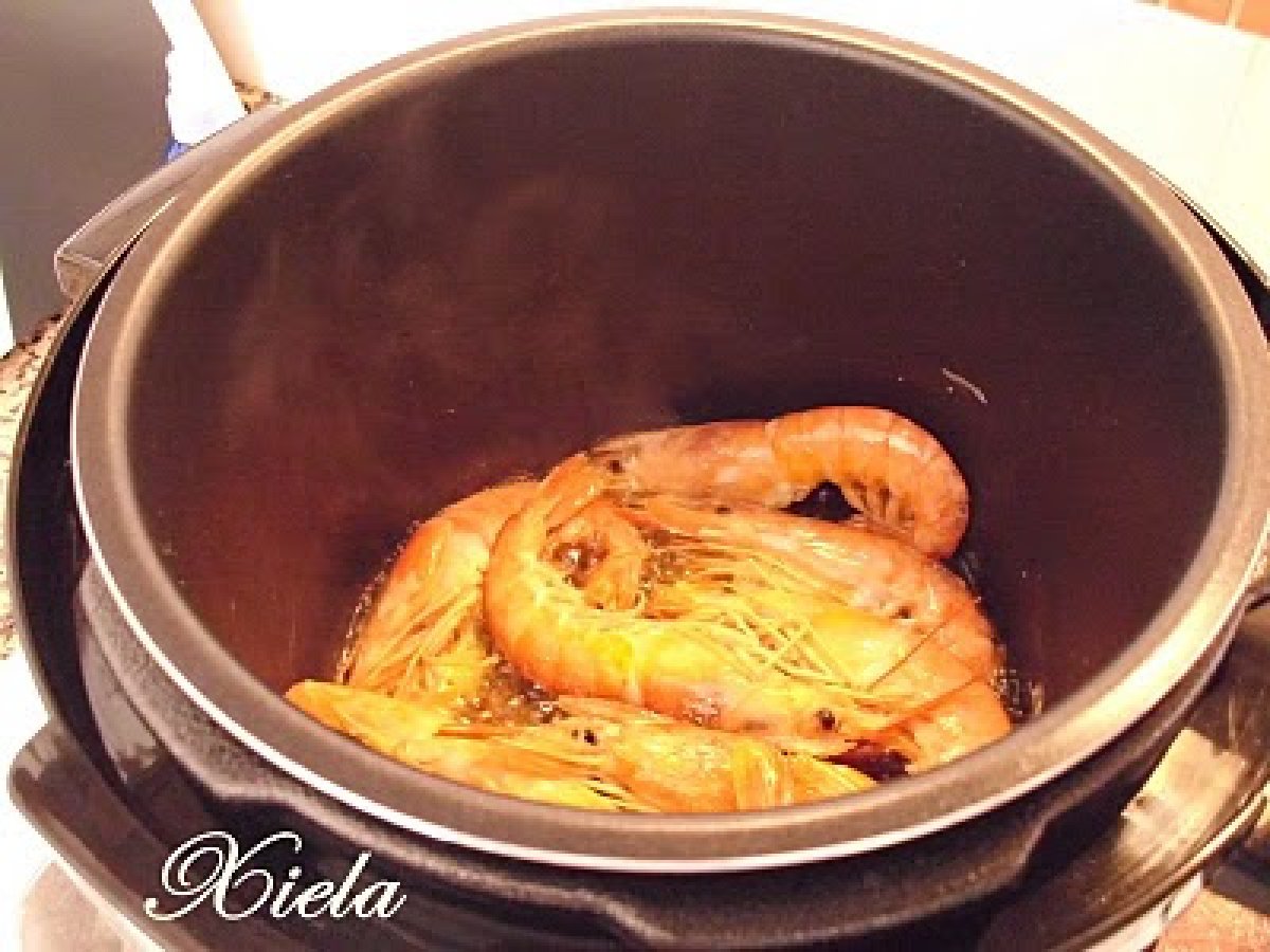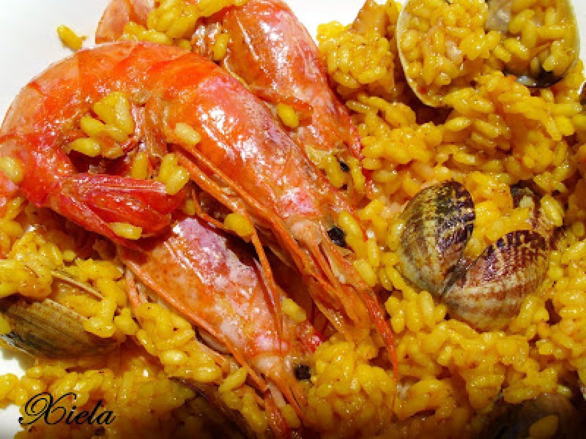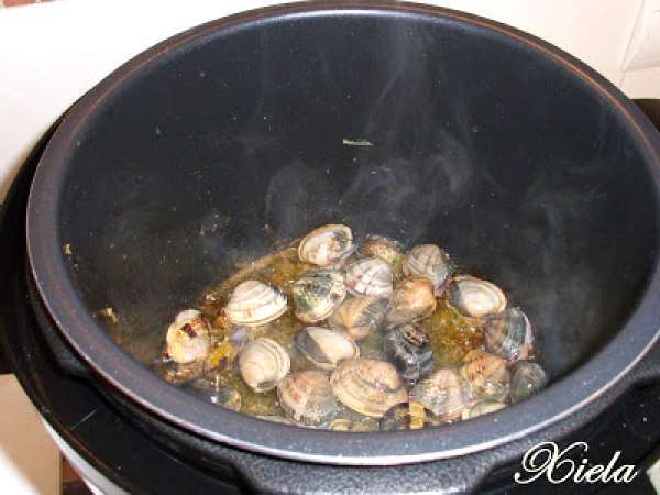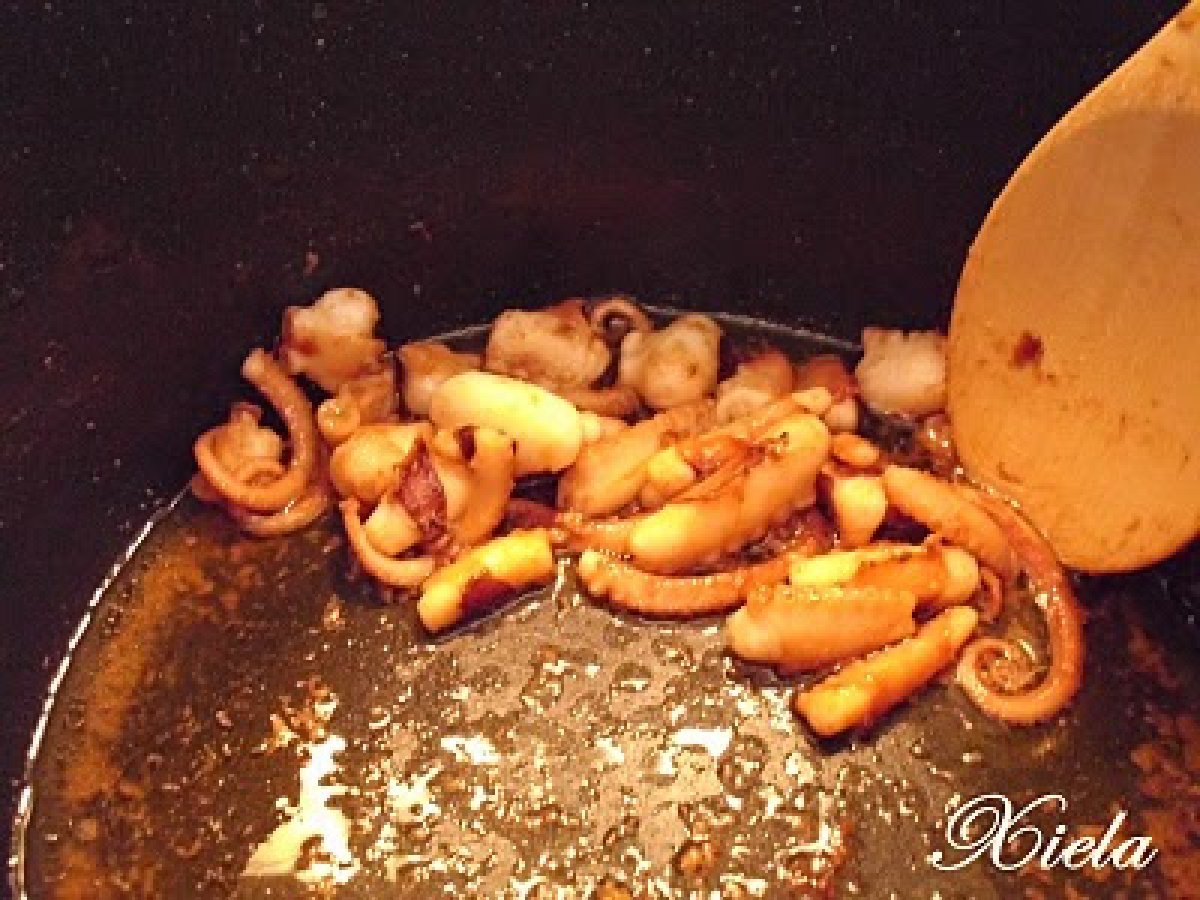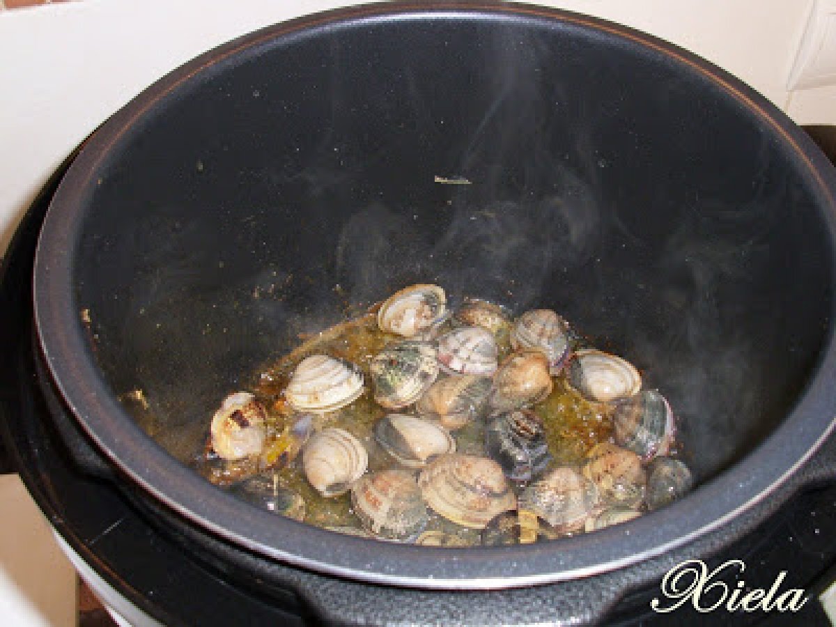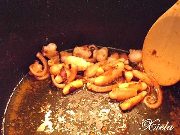 Arroz con pulpo, gambas y almejas (fussioncook, paso a paso) AnteriorSiguiente PlatoFácil22 min Enviar esta receta a un amigo Imprimir esta página Preguntar al autor Publicar la foto de esta receta Ingredientes 6 12 gambas. 1 pulpo pequeño. 1/2 kg de almeja. 4 medidas de arroz. 5 medidas de caldo de pescado. 1 cebolla. 2 tomates maduros. 3 dientes de ajo. 1 trozo de pimiento rojo. Perejil. Colorante. Aceite de oliva.