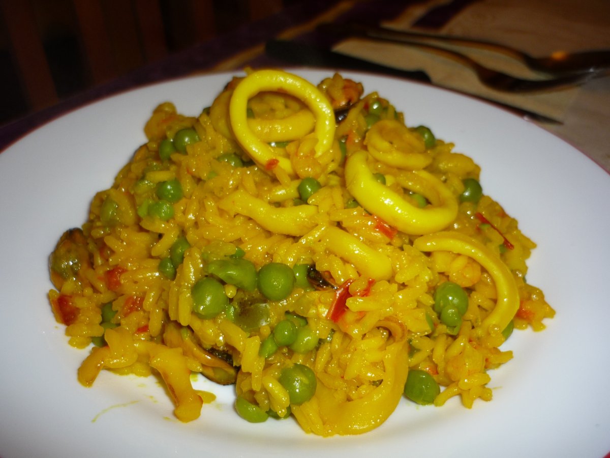 Arroz marinero. PlatoMedio35 min205 Kcal Enviar esta receta a un amigo Imprimir esta página Preguntar al autor Publicar la foto de esta receta Ingredientes 4 Arroz (La cantidad que querais, yo hice como un vaso de agua) 1 cebolla pequeña. 1 Pimiento Verde. 1/2 Pimiento Rojo. 1 Puñado de Anillas de calamar. 1 Puñado de guisantes. 1 Puñado de Mejillones (Yo de los congelados sin cáscara) 1 Puñado de Gambas Caldo de pescado (Podeis usar agua y pastilla de avecrem sabor pescado) Pizca de sal. Aceite de oliva. Colorante alimenticio.