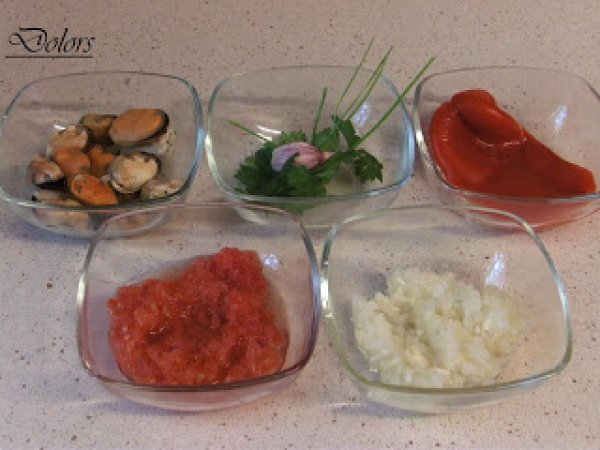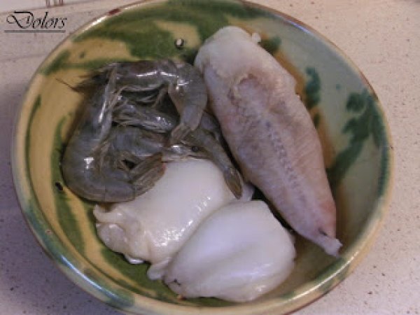 Arroz marinero (olla gmc) vota ahora AnteriorSiguiente PlatoFácil30 min Enviar esta receta a un amigo Imprimir esta página Preguntar al autor Publicar la foto de esta receta Ingredientes 2 6 langostinos 2 sipias medianas 1/2 kg. de mejillones 1 cola de rape de ración 1/2 cebolla pequeña 1 diente de ajo 1 pimiento rojo en conserva 1 tomate maduro 200 g de arroz (un vaso de los de agua lleno) aceite, colorante y sal 2 vasos de agua