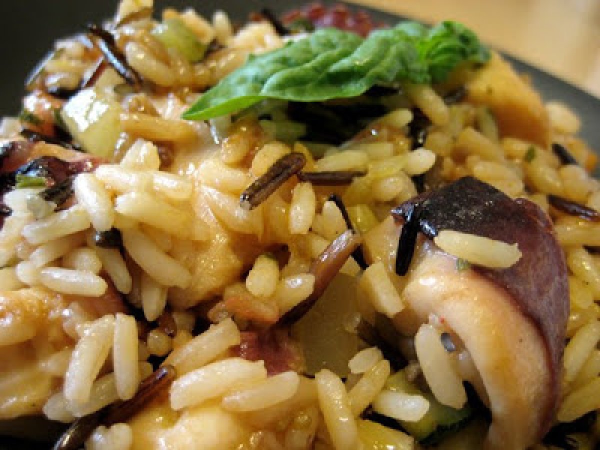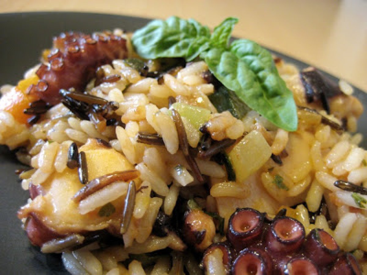 Arroz salvaje con pulpo doméstico AnteriorSiguiente PlatoFácil1 hora543 Kcal Enviar esta receta a un amigo Imprimir esta página Preguntar al autor Publicar la foto de esta receta Disfrute de esta receta con arroz. Ingredientes 2 3 bolsitas individuales de arroz salvaje 250 gr de pulpo ya cocido 1/2 cebolla 1 zanahoria 1 calabacín 1 cucharada de concentrado de tomate caldo de pescado pimentón ahumado Costo estimado: 6.21Euros€ (3.11€/porción)