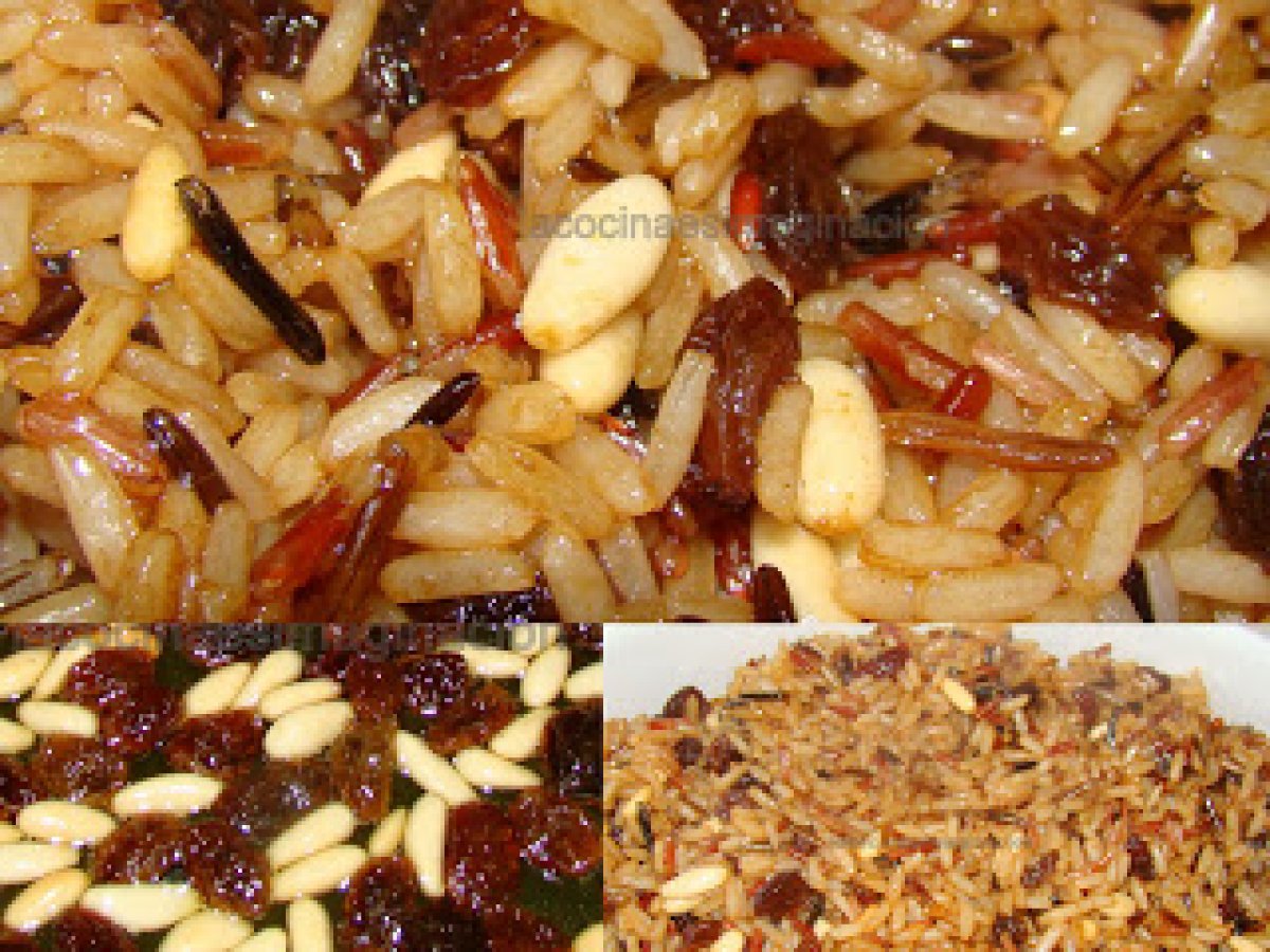 Arroz tres colores con pasas y piñones PlatoFácil55 min Enviar esta receta a un amigo Imprimir esta página Preguntar al autor Publicar la foto de esta receta Ingredientes 3 200 g de arroz 1 puñado de piñones 1 puñado de uvas pasas 2 cucharditas de Bovril Aceite agua sal