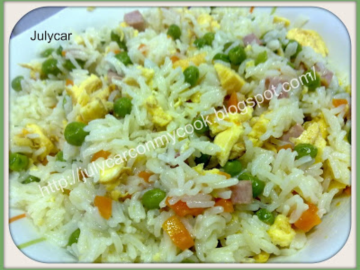Arroz tres delicias olla gm d PlatoFácil1 h 5 m228 Kcal Enviar esta receta a un amigo Imprimir esta página Preguntar al autor Publicar la foto de esta receta Ingredientes 4 1 vasito medidor de arroz basmati 2 vasitos medidores de agua 1 zanahoria un puñado de guisantes congelados 1/2 tarrina de taquito jamon york 2 huevos 3 cucharadas de aceite de oliva sal Costo estimado: 1.78Euros€ (0.45€/porción)