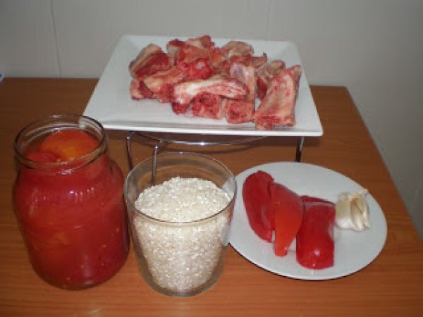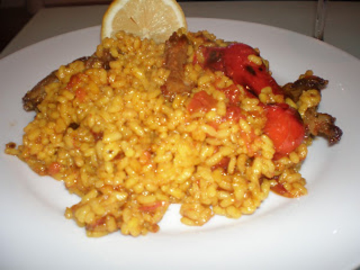 Arroz y costillejas AnteriorSiguiente PlatoFácil32 min1224 Kcal Enviar esta receta a un amigo Imprimir esta página Preguntar al autor Publicar la foto de esta receta Ingredientes 2 200 g arroz, 1/2 kg costillejas de cerdo, 2 dientes de ajo, 1 pimiento rojo, 1/2 kg tomate pelado, aceite, sal, colorante (o azafrán). Costo estimado: 6.47Euros€ (3.24€/porción)