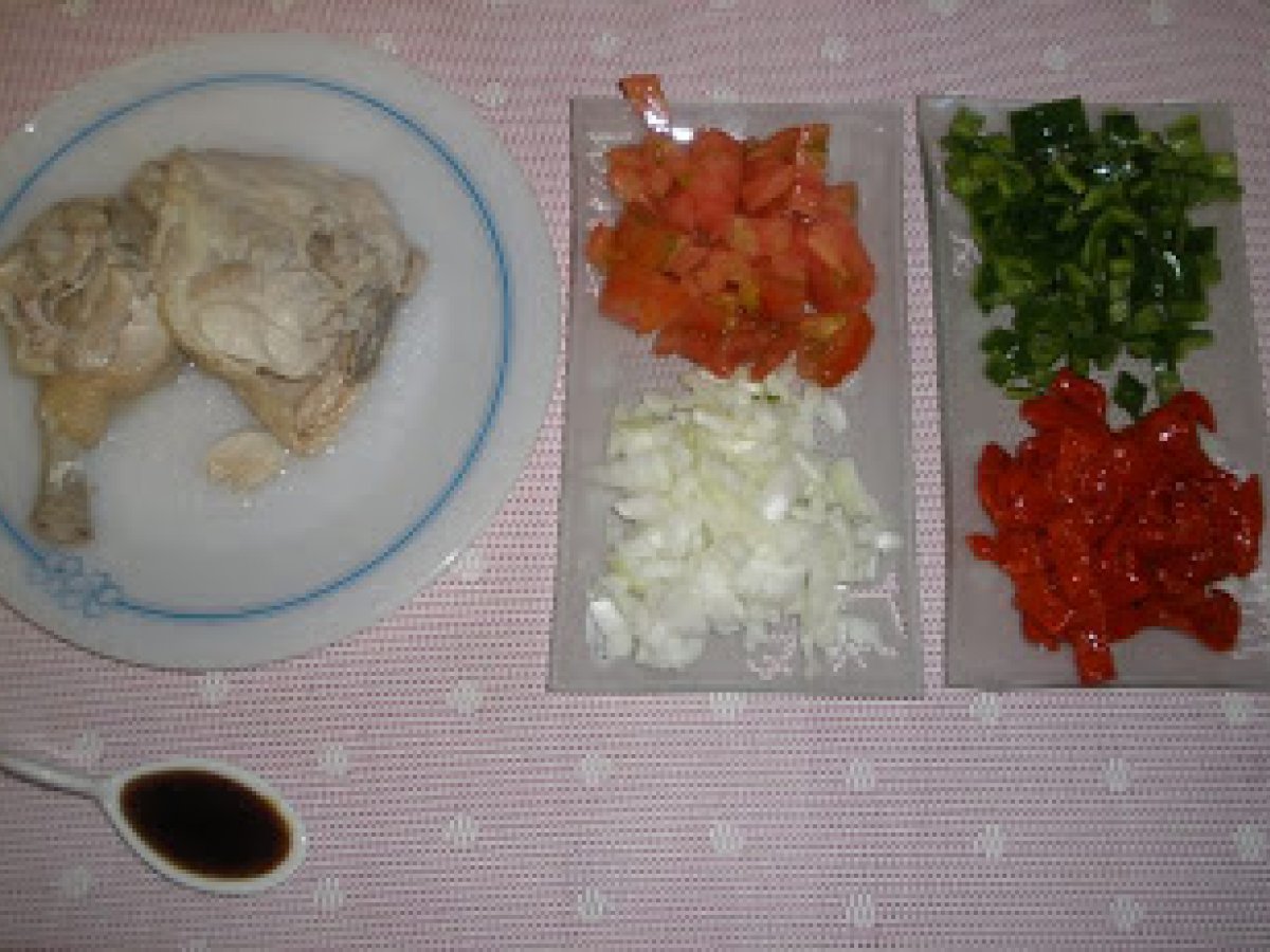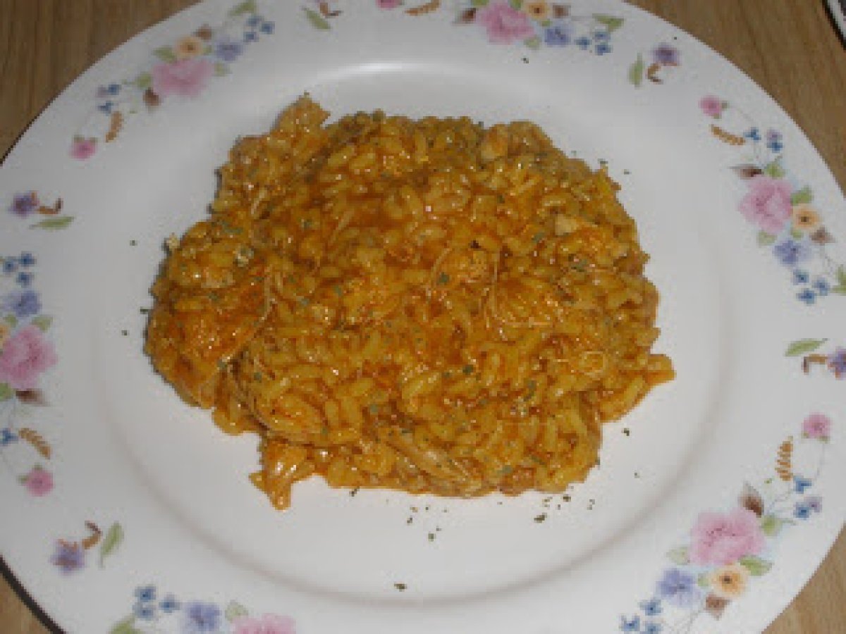 Arroz y pollo con un toque de soja AnteriorSiguiente PlatoFácil30 min80 Kcal Enviar esta receta a un amigo Imprimir esta página Preguntar al autor Publicar la foto de esta receta Ingredientes 1 1 tomate troceado 1/2 cebolla troceada Perejil 1 trocito de pimiento verde y rojo 2 cucharadas soperas de salsa de soja Costo estimado: 0.96Euros€ (0.96€/porción)