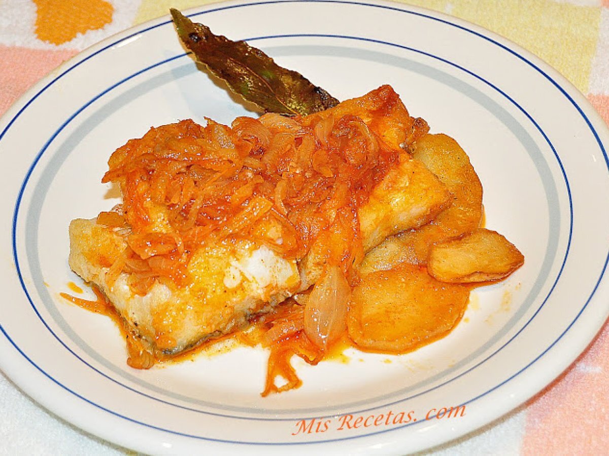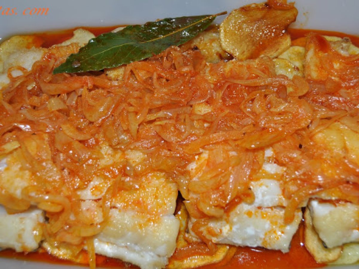 Bacalao a la portuguesa AnteriorSiguiente PlatoFácil50 min Enviar esta receta a un amigo Imprimir esta página Preguntar al autor Publicar la foto de esta receta Ingredientes 2 4 lomos de bacalao 4 patatas 2 cebollas pimentón dulce una hoja de laurel 1 vaso de vino blanco harina para rebozar AOVE