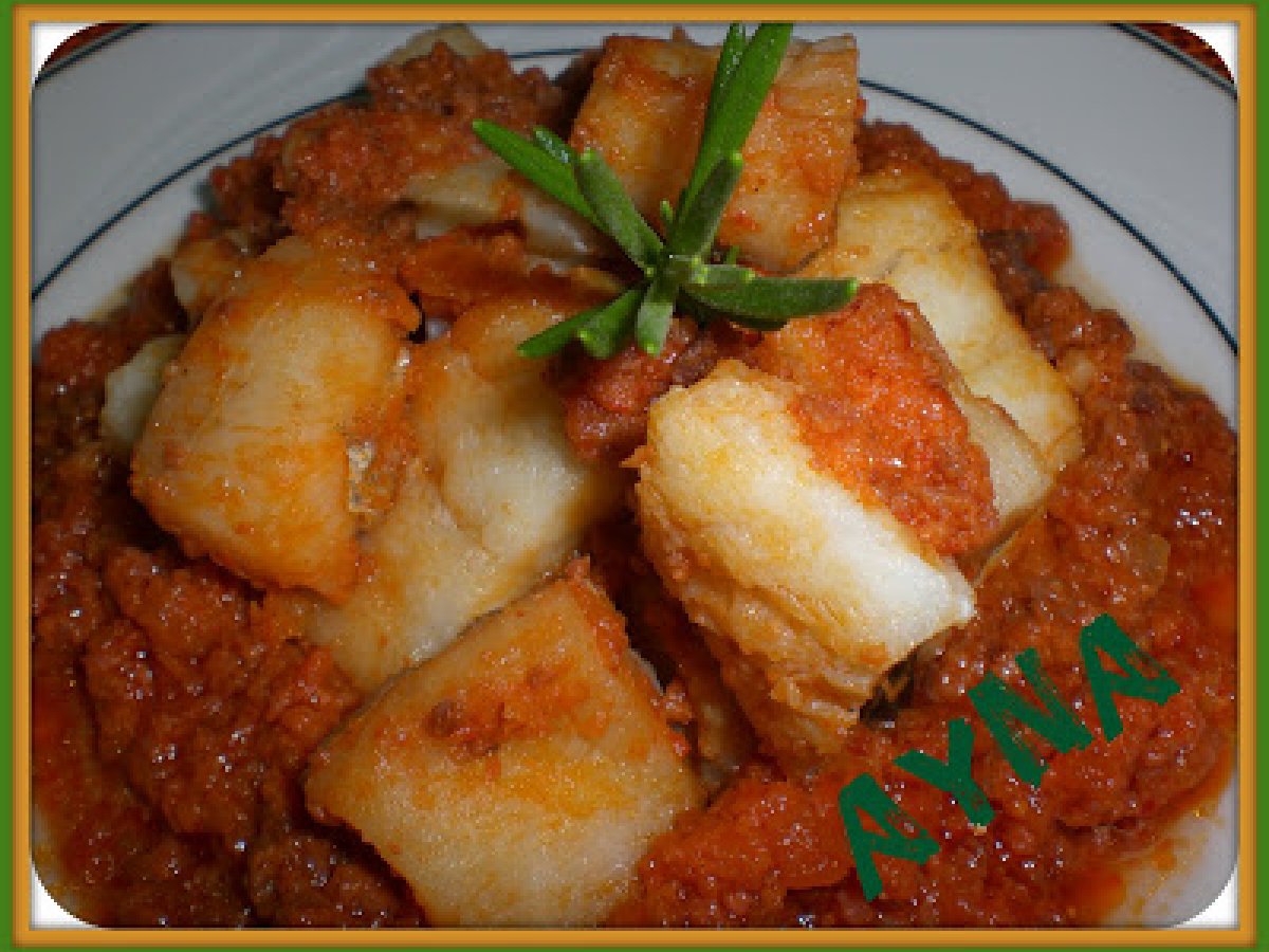 Bacalao al estilo de ayna(fussioncook) vota ahora AnteriorSiguiente PlatoFácil55 min266 Kcal Enviar esta receta a un amigo Imprimir esta página Preguntar al autor Publicar la foto de esta receta Ingredientes 4 450 g de bacalao en su punto de sal 100 g de pimiento morrón 150 g de cebolla 50 g de jamón serrano 1 medidor de agua Harina Aceite Costo estimado: 8.96Euros€ (2.24€/porción)