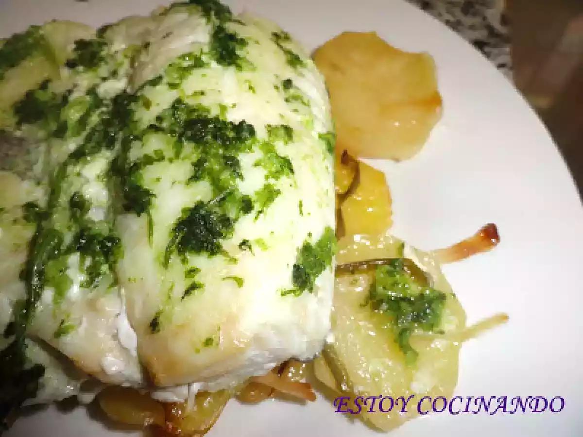 Bacalao al vino blanco con salsa verde AnteriorSiguiente PlatoFácil1 h 10 m281 Kcal Enviar esta receta a un amigo Imprimir esta página Preguntar al autor Publicar la foto de esta receta Ingredientes 4 2 lomos de bacalao fresco 1 pimiento verde 1 cebolla tierna 4 patatas medianas 1 diente de ajo 1/2 limón perejil aceite de oliva 200 ml de vino blanco sal Costo estimado: 5.78Euros€ (1.44€/porción)