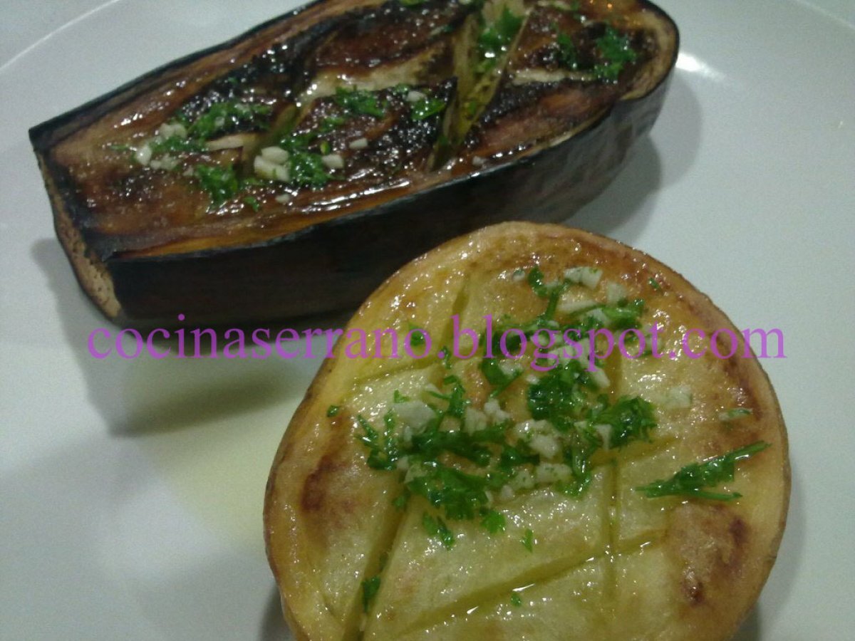 Berenjena y patata al horno AnteriorSiguiente PlatoFácil48 min149 Kcal Enviar esta receta a un amigo Imprimir esta página Preguntar al autor Publicar la foto de esta receta Ingredientes 2 1 berenjena. 1 patata grande. Perejil. Ajo. Aceite Virgen Extra. Sal Costo estimado: 0.75Euros€ (0.37€/porción)