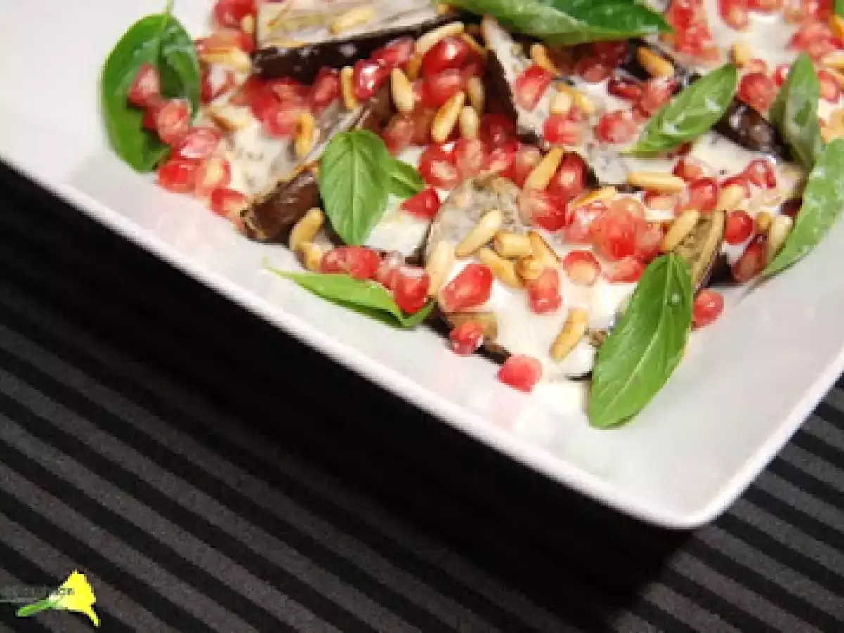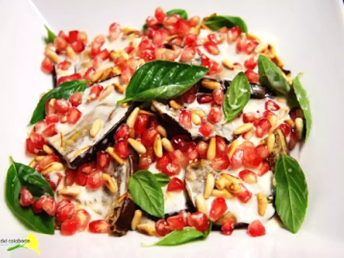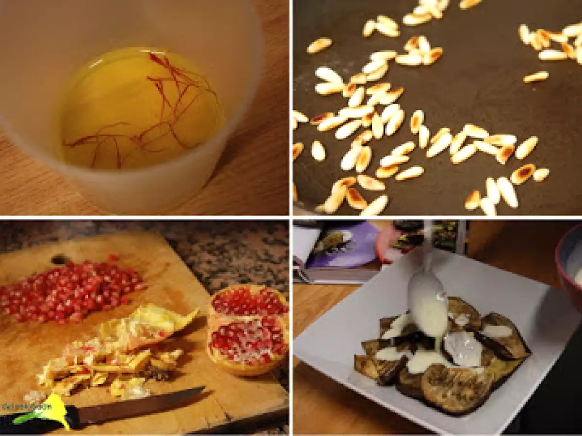 Berenjenas asadas con yogur al azafrán AnteriorSiguiente PlatoFácil30 min518 Kcal Enviar esta receta a un amigo Imprimir esta página Preguntar al autor Publicar la foto de esta receta Optar por un plato simple, rápido y nutritivo. Ingredientes 1 un par de berenjenas un puñado de piñones los granos de media granada hojas de albahaca unas hebras de azafrán 150 g de yogur natural un chorrito de zumo de limón aceite de oliva y sal Costo estimado: 3.23Euros€ (3.23€/porción)