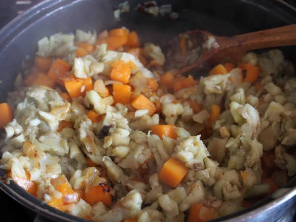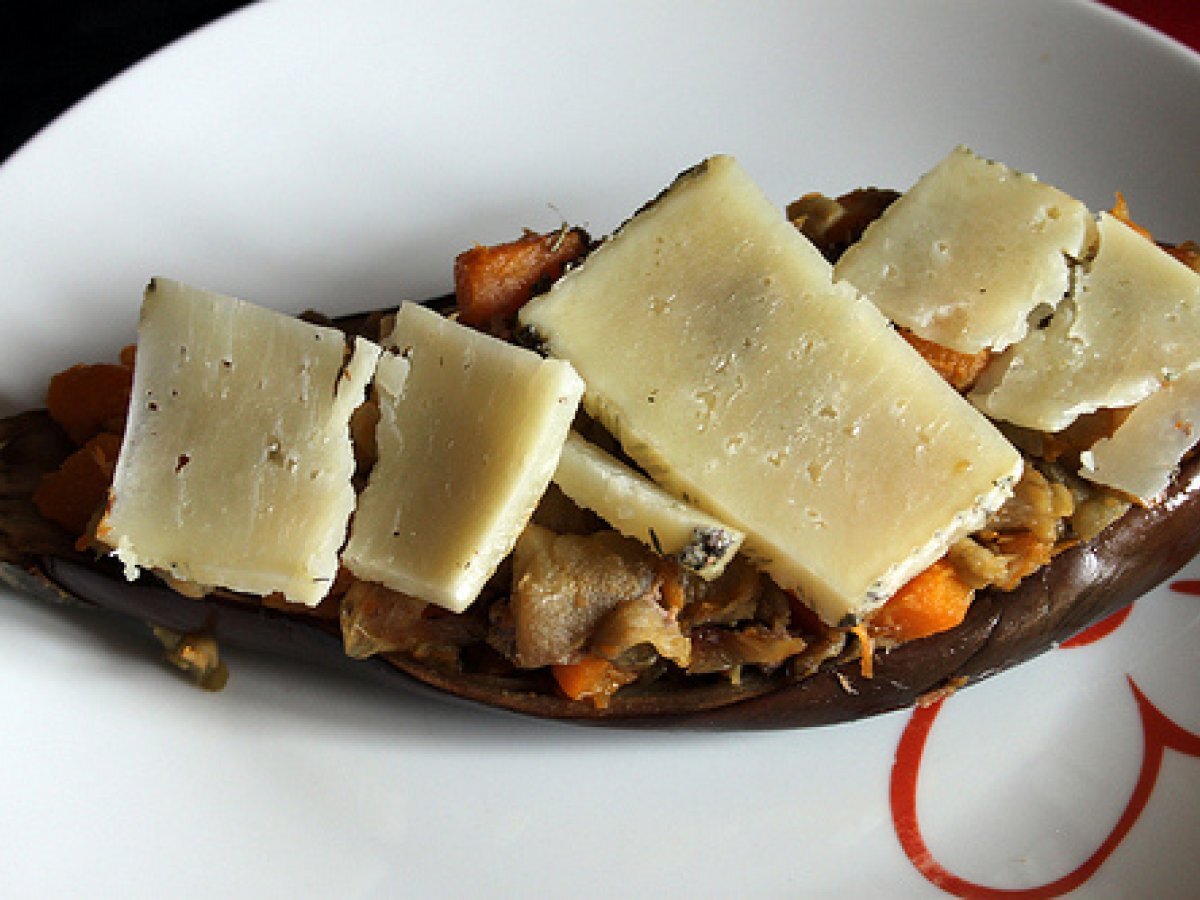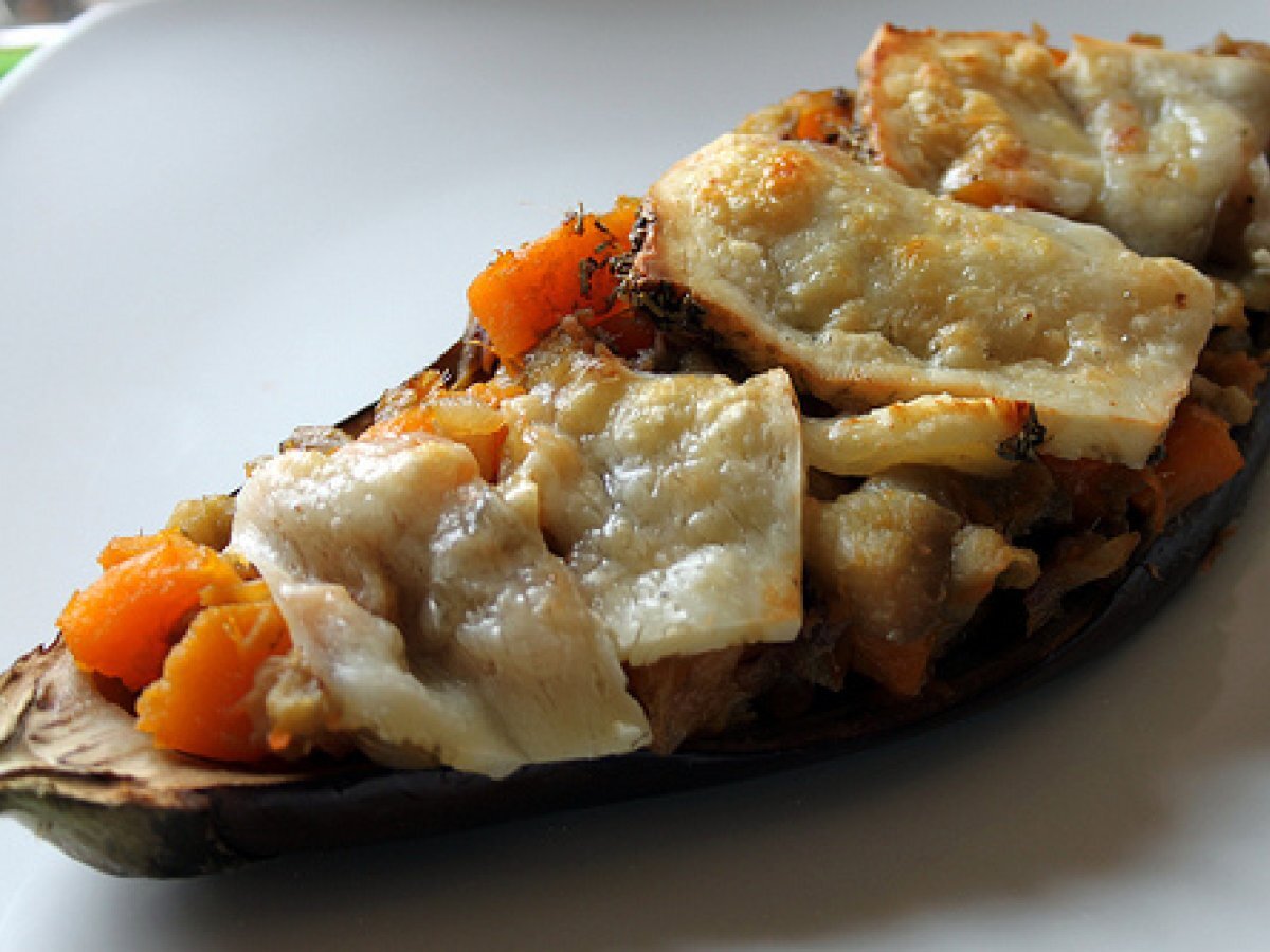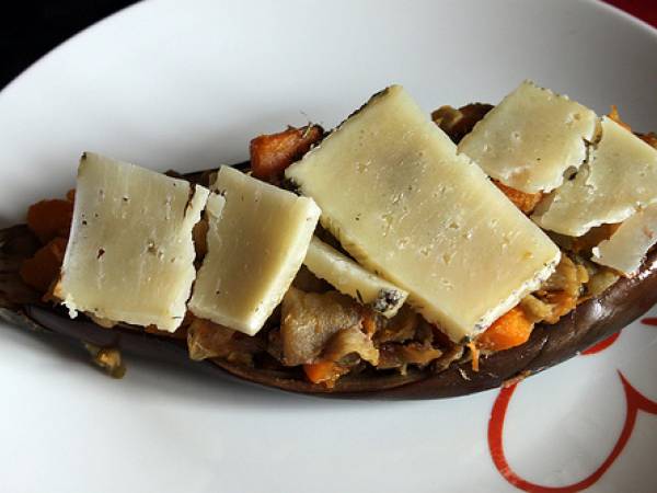 Berenjenas rellenas de calabaza y anchoas AnteriorSiguiente PlatoFácil20 min376 Kcal Enviar esta receta a un amigo Imprimir esta página Preguntar al autor Publicar la foto de esta receta Ingredientes 2 2 berenjenas grandes 500 g de calabaza 2 cebollas 2 dientes de ajo 12-16 anchoas en aceite Aceite de oliva virgen extra sal Pimienta negra Queso Costo estimado: 7.91Euros€ (3.95€/porción)