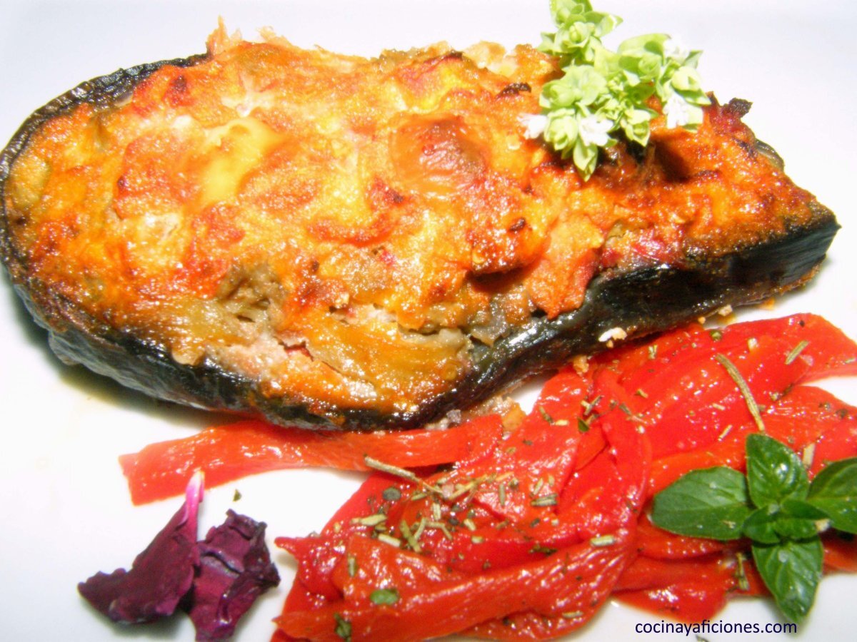 Berenjenas rellenas de pisto y carne con costra PlatoMedio45 min Enviar esta receta a un amigo Imprimir esta página Preguntar al autor Publicar la foto de esta receta Ingredientes 2 4 berenjenas pequeñas (de ración), 300 gr. carne picada (mitas cerdo, mitad ternera), 1 pimiento rojo, 1 pimiento verde, 1 cebolla, ½ calabacín, 2 tomates, 1 huevo, 100 gr. de queso de cabra que funda bien, pan rallado, 1 vaso de vino, 1 vaso de caldo. 1 c/p de rass el hanout o las especias que prefieras, pimienta, perejil