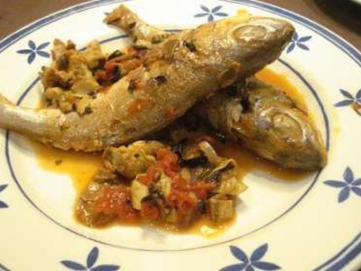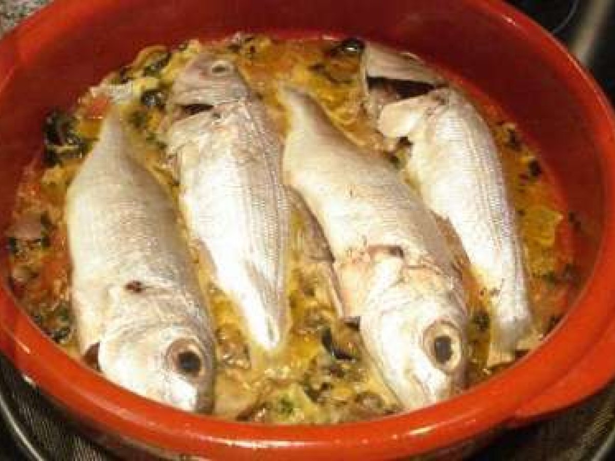 Besuguitos en salsa de boletus AnteriorSiguiente PlatoMedio20 min Enviar esta receta a un amigo Imprimir esta página Preguntar al autor Publicar la foto de esta receta Ingredientes 2 Ingredientes para 2 personas: 4 besugos pequeños, 100 gr. de boletus secos, 2 tomates pelados, aceitunas negras, 1/4 de cebolla morada, 2 dientes de ajo, perejil, albahaca, sal, vino blanco, aceite.
