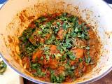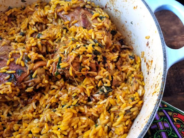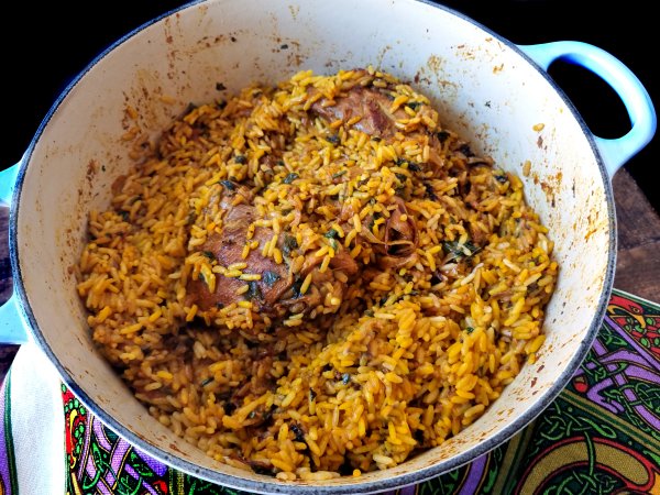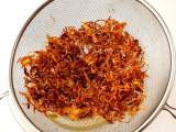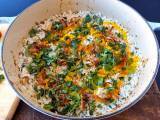 El biryani es un plato de arroz de la cocina india y pakistaní elaborado con una mezcla de especias y hierbas así como arroz basmati, carne o vegetales y yogur. Es una de las joyas de las recetas de arroz. El biryani tiene un origen incierto. Podría tener un origen persa ya que el nombre del plato viene del persa "beryãn" que significa "frito antes de cocinar", y hasta ahí me pega. Y el plato fue viajando hasta llegar a la India. Otra teoría es que podría tener cierta conexión con el pilav turco. Hay muchas variedades de biryani, tantas como familias indias. Cada región la ha adaptado a su manera, tanto en la aportación de especias como en los pasos en su preparación. La versión vegetariana del biryani se llama "Tehari", que me suena precioso. Su elaboración es laboriosa, larga como un día sin pan, y podría decir que no es una receta para principiantes ni para cocineros con poco tiempo. Lleva muchos ingredientes también y a menos que te guste la cocina india seguro que no los tendrás en tu despensa. No quiero desanimar a nadie pero hay que ser realistas. El resultado merece la pena todo el tiempo y trabajo invertido porque además de estar sublime te salen varias raciones para llevar al trabajo. He añadido ligeros cambios a la receta de Pilopi: la cantidad de copos de chile rojo la he reducido a una cucharada y aún así me ha salido bastante picante. También he cambiado el arroz basmati por arroz vaporizado del que nunca se pasa. Tampoco he usado azafrán, lo he cambiado por colorante (ohhh, sacrilegio...).