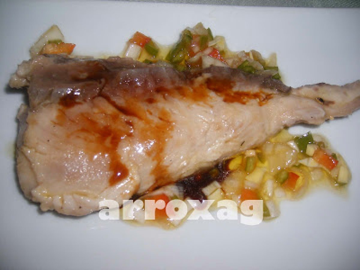 Bonito macerado con vinagreta de verduritas vota ahora PlatoFácil50 min Enviar esta receta a un amigo Imprimir esta página Preguntar al autor Publicar la foto de esta receta Ingredientes 4 Un bonito de 1,5 Kg Aceite de oliva virgen extra 1 limón y medio exprimido 1 ramita de romero 1 hoja de laurel sal pimienta 1 pimiento verde 1 cuarto de pimiento rojo 1/2 cebolla 1 o 2 cucharaditas de soja
