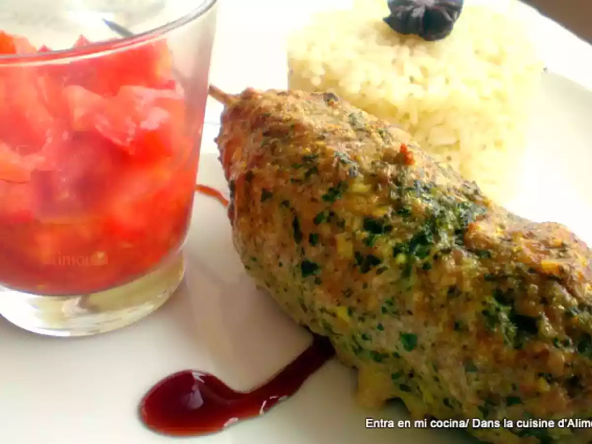 Brocheta de carne picada al curry AnteriorSiguiente PlatoFácil1 hora482 Kcal Enviar esta receta a un amigo Imprimir esta página Preguntar al autor Publicar la foto de esta receta Ingredientes 4 1 diente de ajo 700 g de carne picada mitad cerdo-mitad ternera 1 huevo 2 c.cafe de curry cilandro fresco sal-pimienta aceite de oliva virgen extra Palitos de madera crema de vinagre balsamico de frambuesas (facultativo)