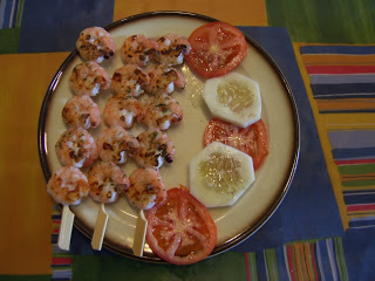 Brochetas de langostinos con acompañamiento vota ahora AnteriorSiguiente PlatoFácil20 min Enviar esta receta a un amigo Imprimir esta página Preguntar al autor Publicar la foto de esta receta Ingredientes 2 6 brochetas de langostinos congelados 2 tomates ensalada Medio pepino 150 g arroz 1 bote salsa de tomate boloñesa aceite,sal y pimienta blanca.