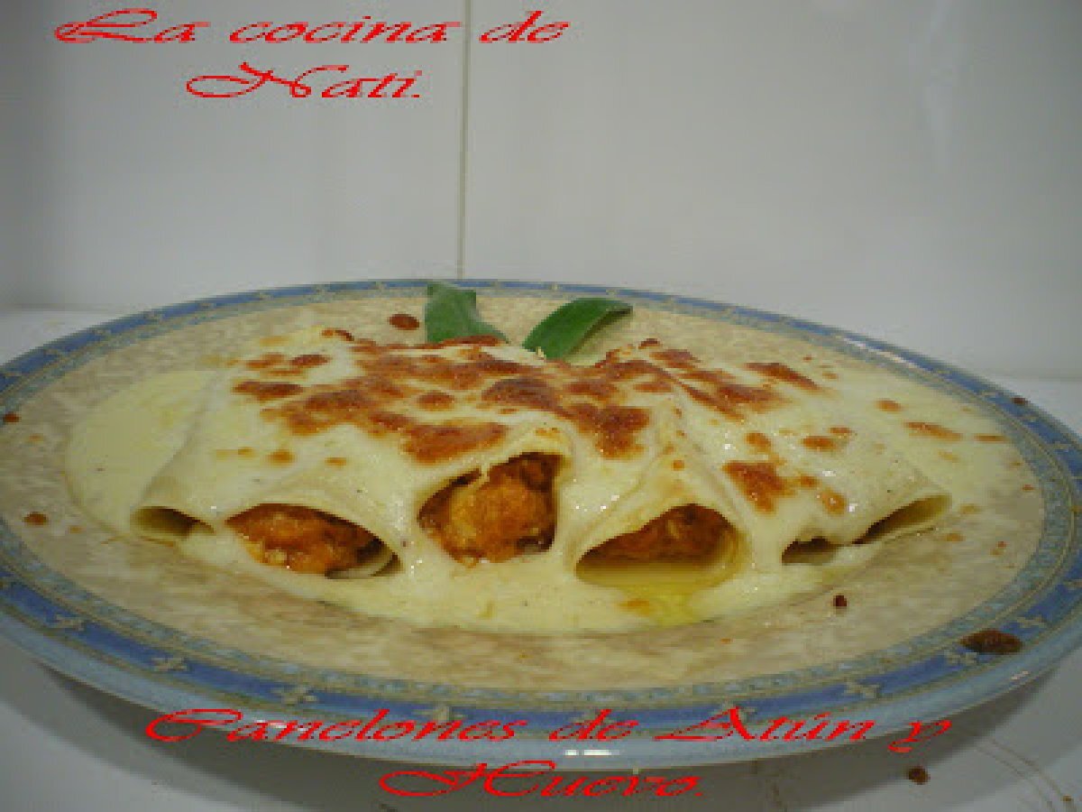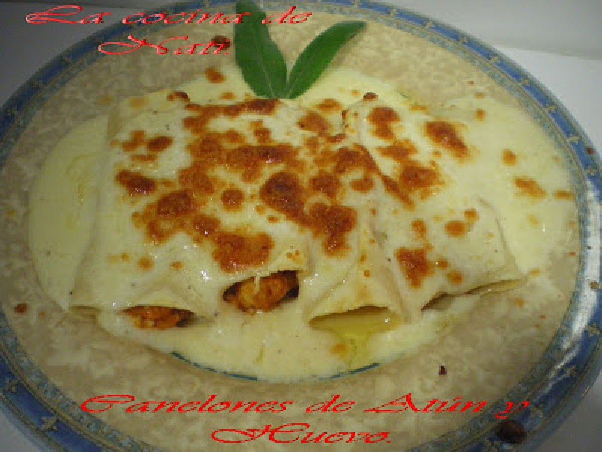 Canelones de atún y huevo. AnteriorSiguiente PlatoFácil45 min1181 Kcal Enviar esta receta a un amigo Imprimir esta página Preguntar al autor Publicar la foto de esta receta Ingredientes 4 Masa de pasta fresca 4 latas de atún en aceite de oliva 2 huevos cocidos 1 bote de tomate frito 1 cebolla 50 g de queso rallado Salsa bechamel Costo estimado: 2.82Euros€ (0.71€/porción)