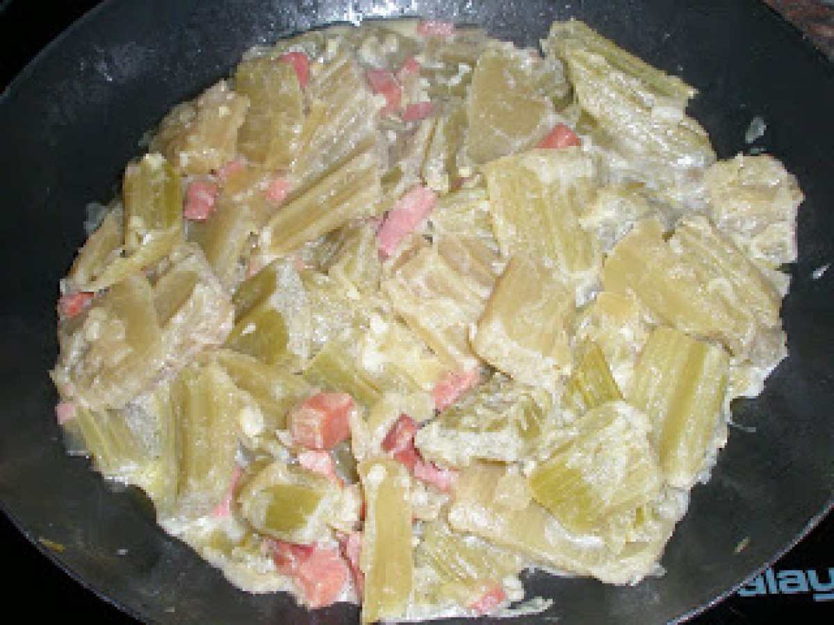 Cardo con almendras y jamón PlatoFácil25 min565 Kcal Enviar esta receta a un amigo Imprimir esta página Preguntar al autor Publicar la foto de esta receta Ingredientes 1 2 botes de cardo al natural. 100 g de jamón serrano en trocitos. 50 g de almendras picadas o cualquier otro fruto seco. 50 ml de leche. Sal al gusto. Costo estimado: 4.55Euros€ (4.55€/porción)