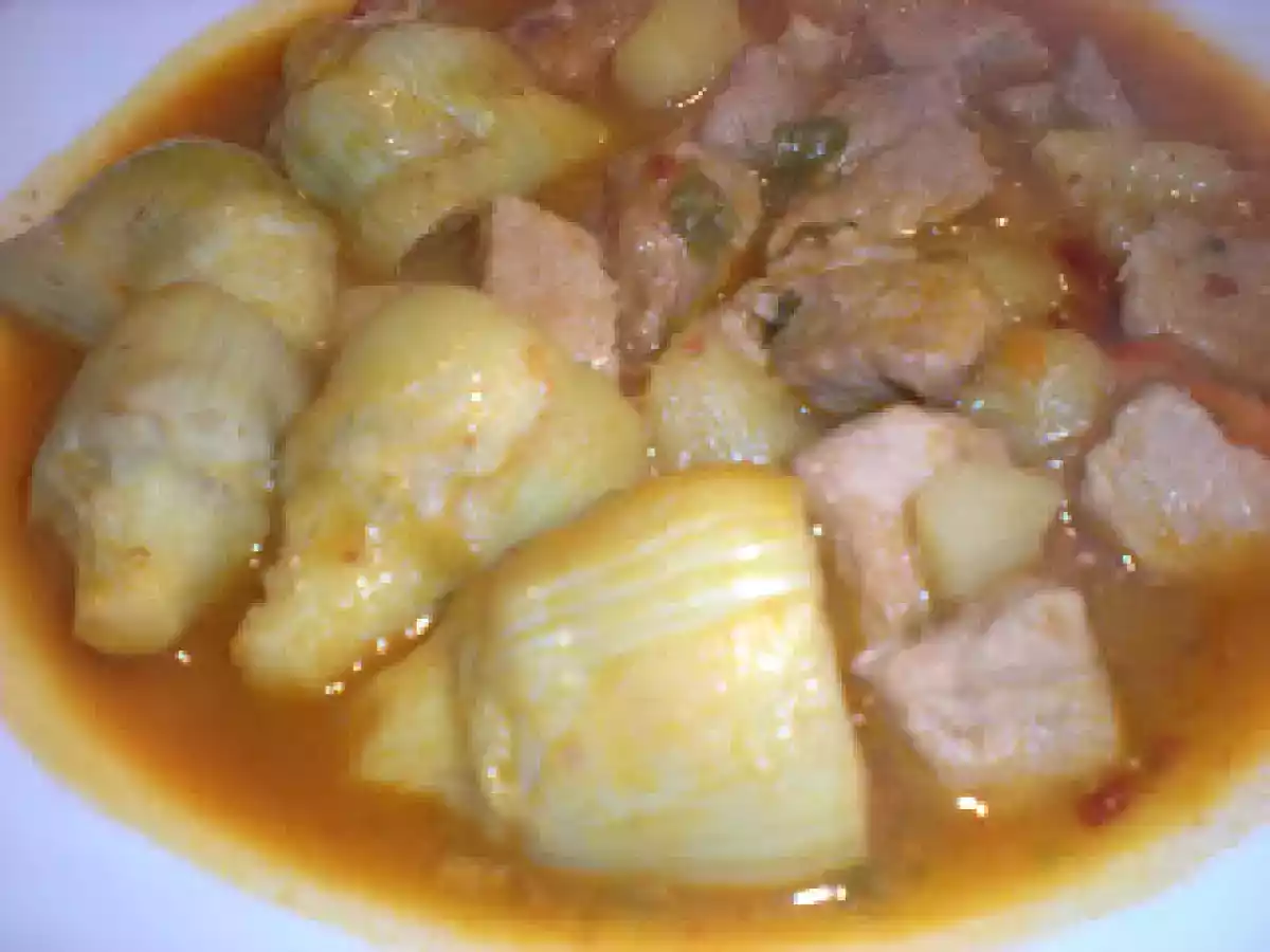 Carne con corazones de alcachofas AnteriorSiguiente PlatoFácil50 min Enviar esta receta a un amigo Imprimir esta página Preguntar al autor Publicar la foto de esta receta Ingredientes 4 500 gramos carne aguja de cerdo 2 botes de corazones de alcachofas 1 pimiento verde picado 1 cebolla mediana picada 1 tomate pelado y picado 4 dientes de ajo picado 4 cucharas de aceite de oliva 1 cucharadita de pimentón 1 pizca de pimienta negra molida 1 hoja de laurel 1 vaso de vino blanco ¼ de litro 1 vaso de agua o caldo ¼ de litro 1 pastilla de carne si no tienes caldo 1 toque de sal